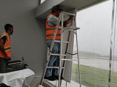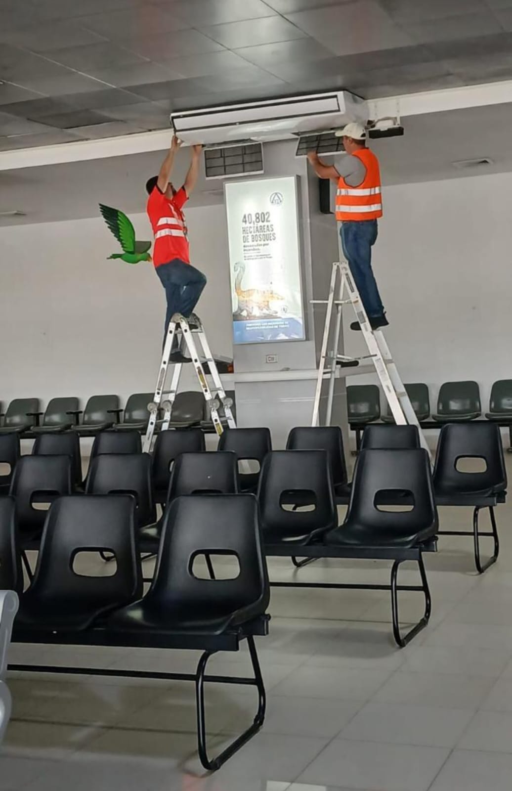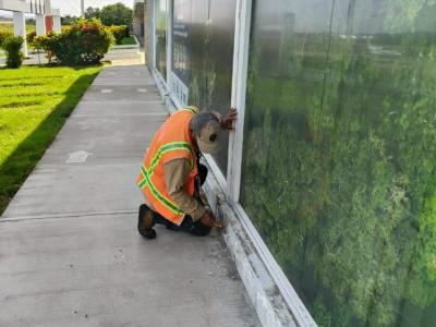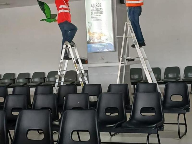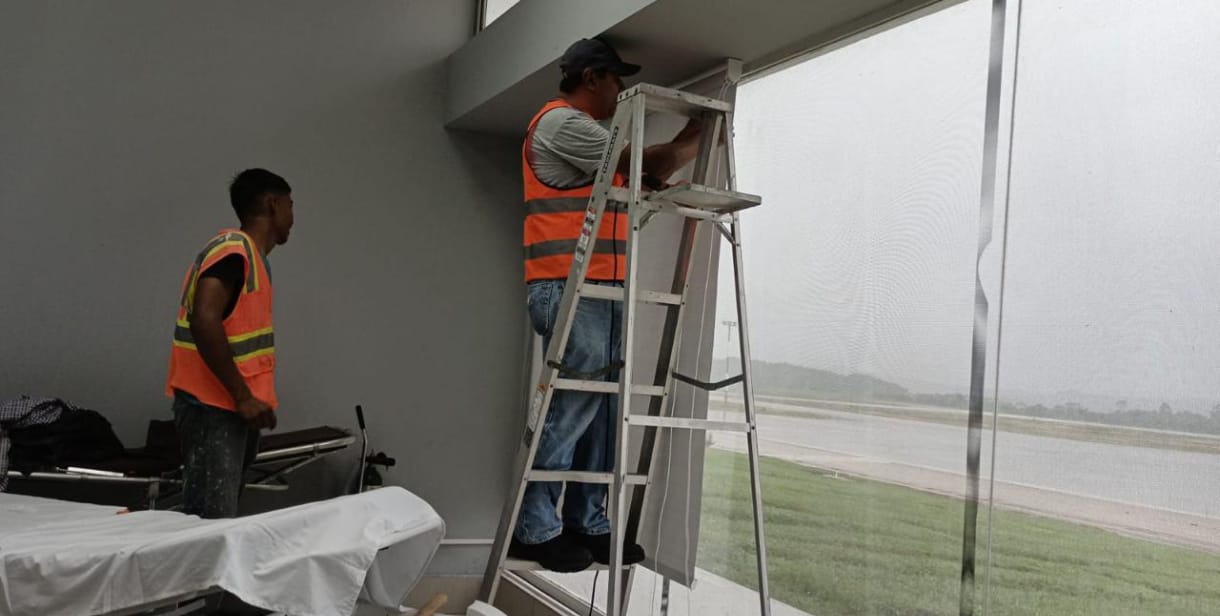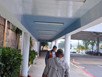 En el ámbito técnico y de infraestructura, se realizaron mantenimientos y reemplazo de lámparas en mal estado, trabajos de fontanería incluyendo reparaciones de baños y mingitorios, y la aplicación de impermeabilizante en terrazas para prevenir filtraciones. También se implementó el cambio de color en pasillos exteriores, aportando una imagen más moderna y coherente con la identidad aeroportuaria, además de la instalación de persianas en la clínica médica, mejorando la comodidad para usuarios y personal.