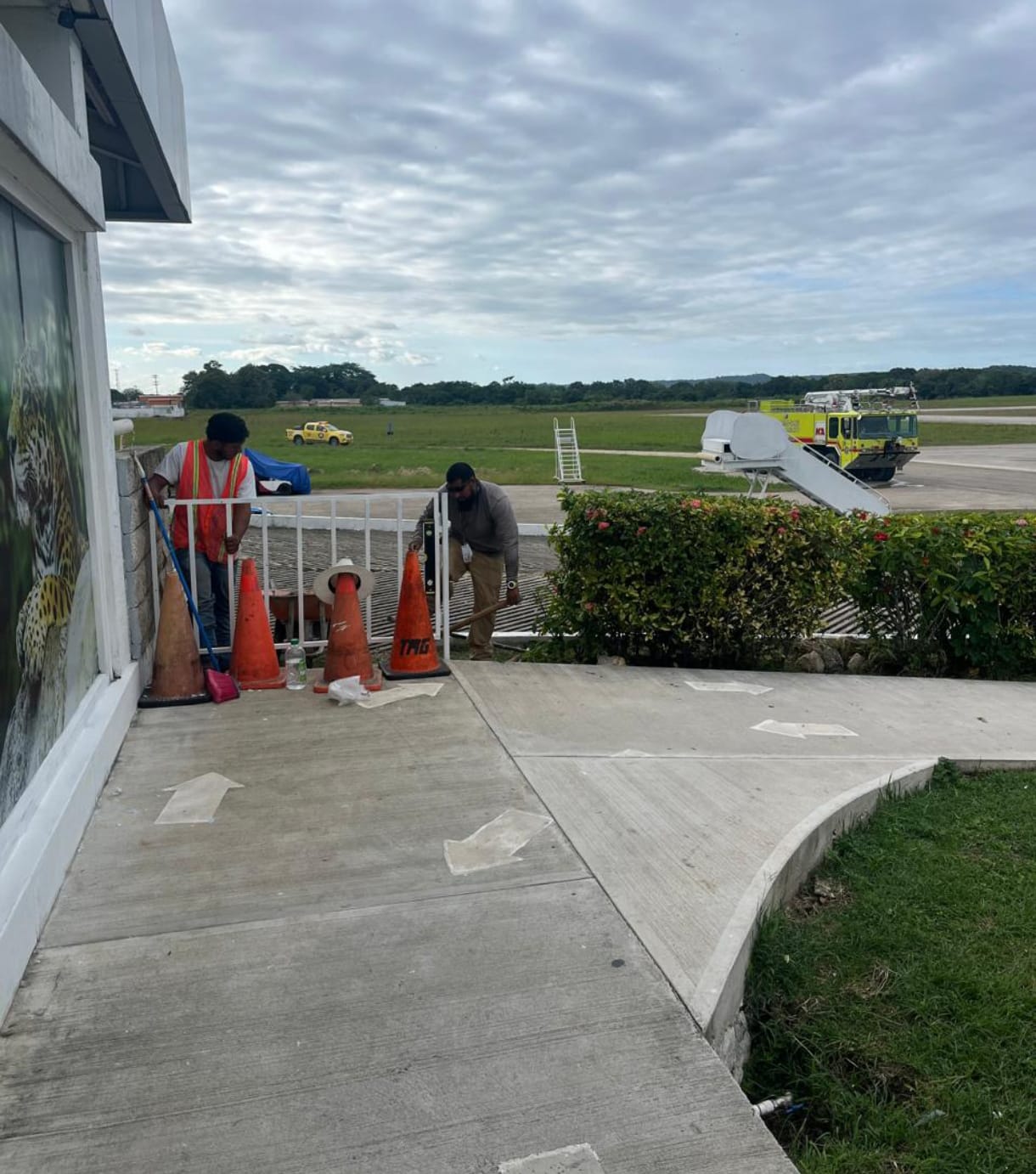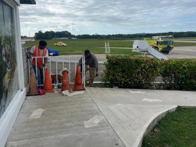 Entre ellas destacan los trabajos de remozamiento y pintura, así como la jardinización y corte de grama, que renuevan la imagen del aeropuerto y brindan un entorno más ordenado y agradable. Asimismo, se avanzó en la instalación de la puerta de acceso al área de fajas, mejorando el control y la seguridad del flujo operativo.