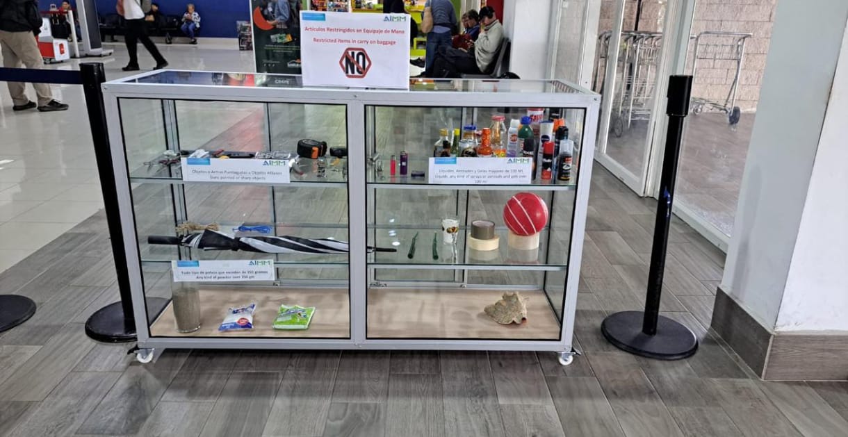 Finalmente, como parte de la mejora en la comunicación con los pasajeros, hoy se colocó en la entrada principal la nueva vitrina informativa sobre artículos no permitidos en equipaje de mano, una herramienta que facilita procesos de control y reduce contratiempos durante el tránsito por el aeropuerto.