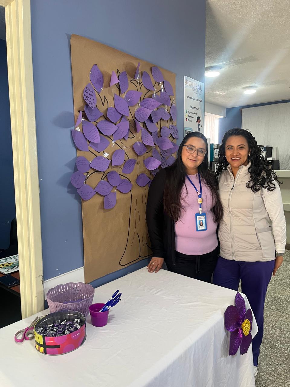 Durante la dinámica, cada participante colocó en el árbol una hoja violeta con mensajes dedicados a las mujeres: palabras de fortaleza, esperanza y reconocimiento a su papel fundamental en la familia y en la sociedad.