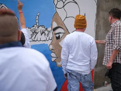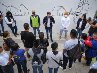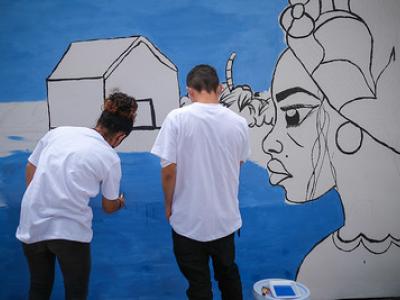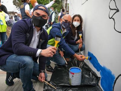 Los jóvenes contaron con el apoyo del pintor colombiano Camilo Sanabria, quien los guió en cuanto a técnica, iluminación y manejo de color. “La idea es que ellos sean quienes realicen el mural bajo la supervisión y guía nuestra. Esto brinda la oportunidad a los jóvenes de explorar ciertos talentos, de explorar la creatividad, de apropiarse de un espacio que es público”, expresó.