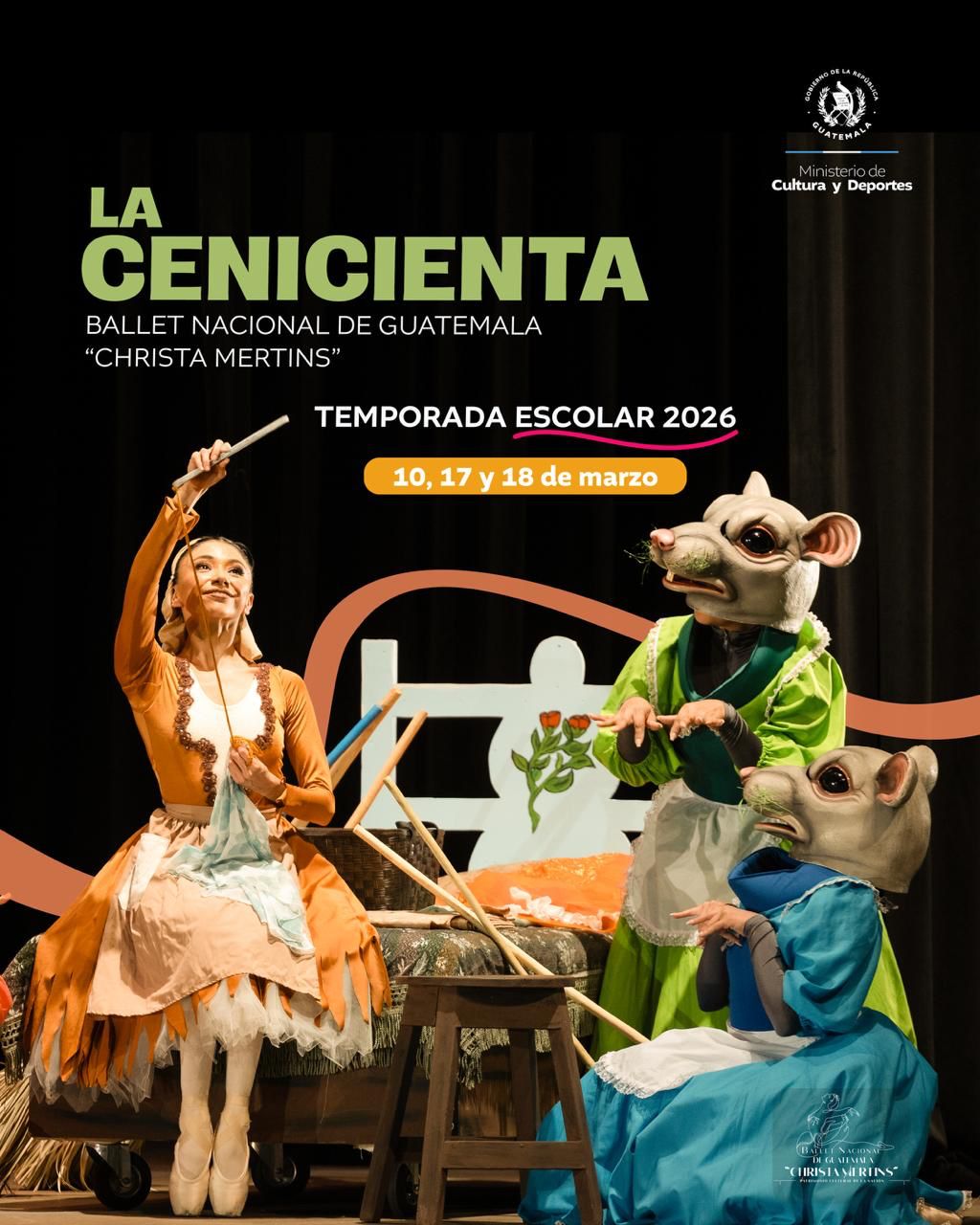El Ballet Nacional de Guatemala “Christa Mertins” invita a los establecimientos educativos, públicos y privados, a vivir una experiencia llena de color, asombro y aprendizaje con la puesta en escena “La Cenicienta”.