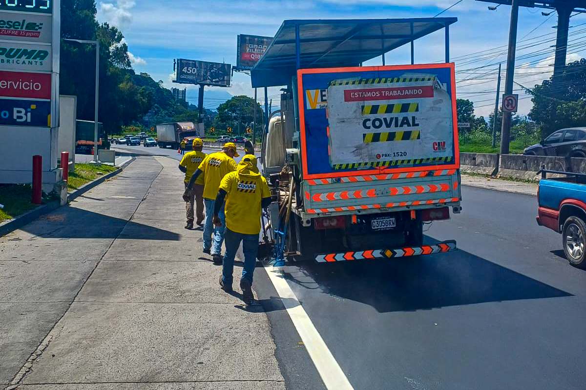 Las cuadrillas de la Unidad Ejecutora de Conservación Vial (Covial) trabajan en la CA-1 Oriente, carretera a El Salvador, para mejorar la visibilidad y seguridad de miles de conductores que transitan a diario por esta importante ruta.