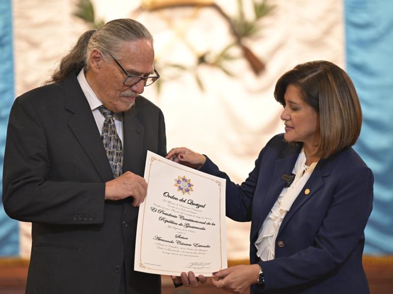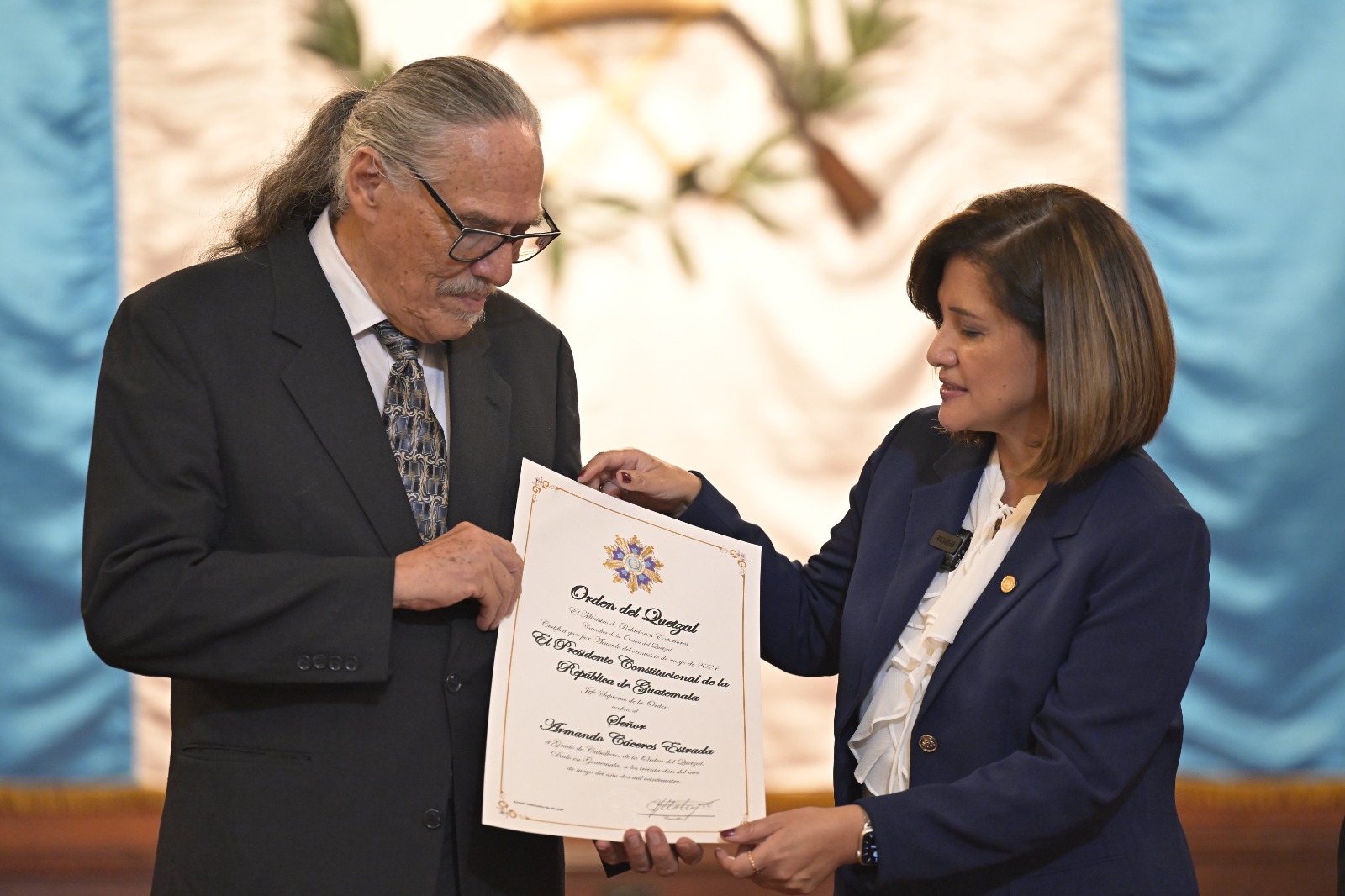 El reconocido científico guatemalteco, Armando Cáceres, es distinguido con la prestigiosa Orden del Quetzal en el grado de caballero, por sus invaluables contribuciones al campo de la ciencia y la investigación. La ceremonia de condecoración la realizó la vicepresidenta y presidenta en funciones, Dra. Karin Herrera.