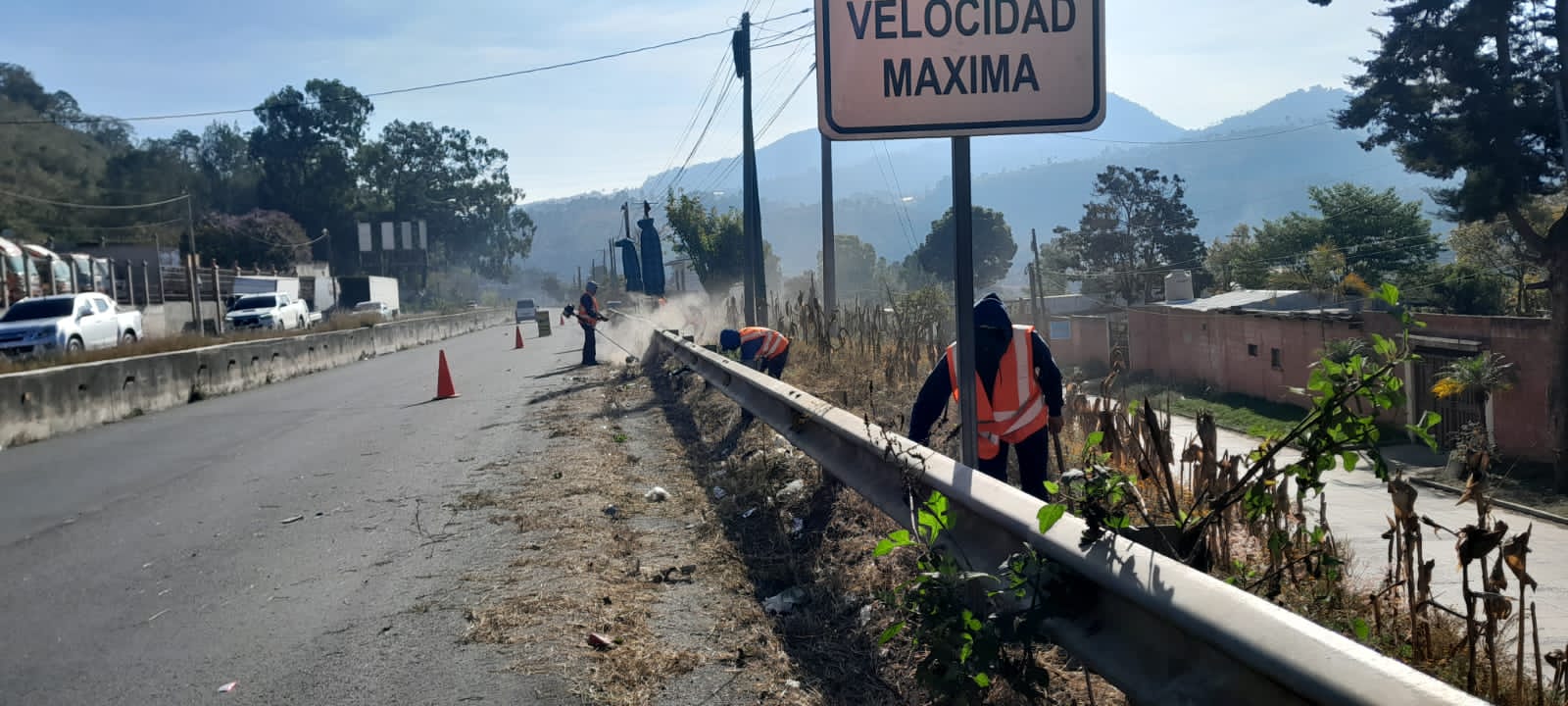 Por aparte la zona vial 12 dio a conocer que se hace limpieza, chapeo de taludes y derecho de vía en la Ruta CA-1 Occidente tramo entre El Tejar y Sumpango. En otro sector del país, específicamente en la ruta CA-14, tramo entre El Rancho y la Cumbre Santa Elena, se realiza limpieza y chapeo en ambas vías.