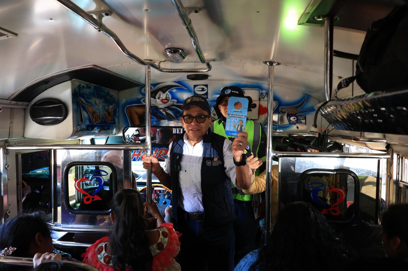 "Queremos prevenir que cualquier eventualidad suceda durante su viaje, desde el Ministerio de Comunicaciones deseamos de todo corazón que disfruten de estas fiestas de Semana Santa en paz, junto a su familia. Estamos supervisando estos operativos que son para prevenir accidentes y prevenir excesos, que tengan feliz viaje", dijo el ministro Díaz a los pasajeros de un bus e hizo entrega de un marbete al piloto.