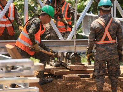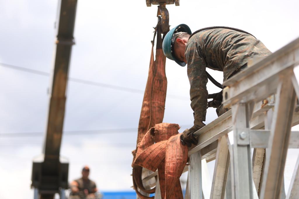 El CIV y MINDEF continúan trabajando en la colocación de puente tipo Bailey en el kilometro 17.5 de la CA-09 Sur.