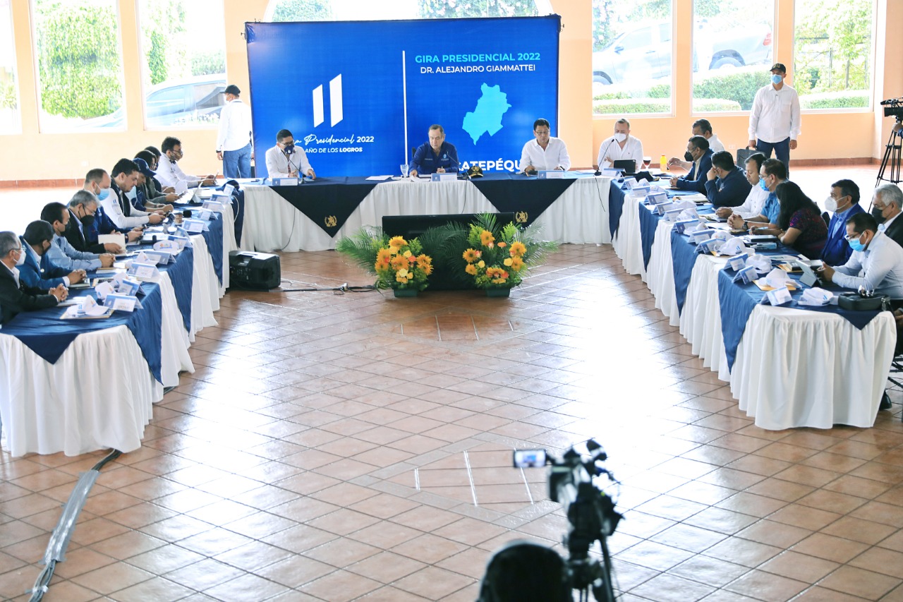 El Presidente Alejandro Giammattei también sostuvo una reunión de trabajo con el gobernador y alcaldes, para dar seguimiento a las obras que impulsan el desarrollo social y económico de las comunidades. El mandatario les recordó que el 15 de abril es la fecha límite para que las municipalidades entreguen a SEGEPLAN los expedientes de los proyectos, para revisión y asignación del código SNIP.
