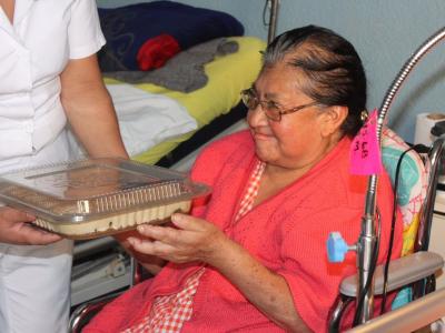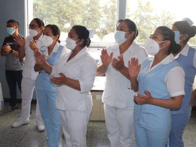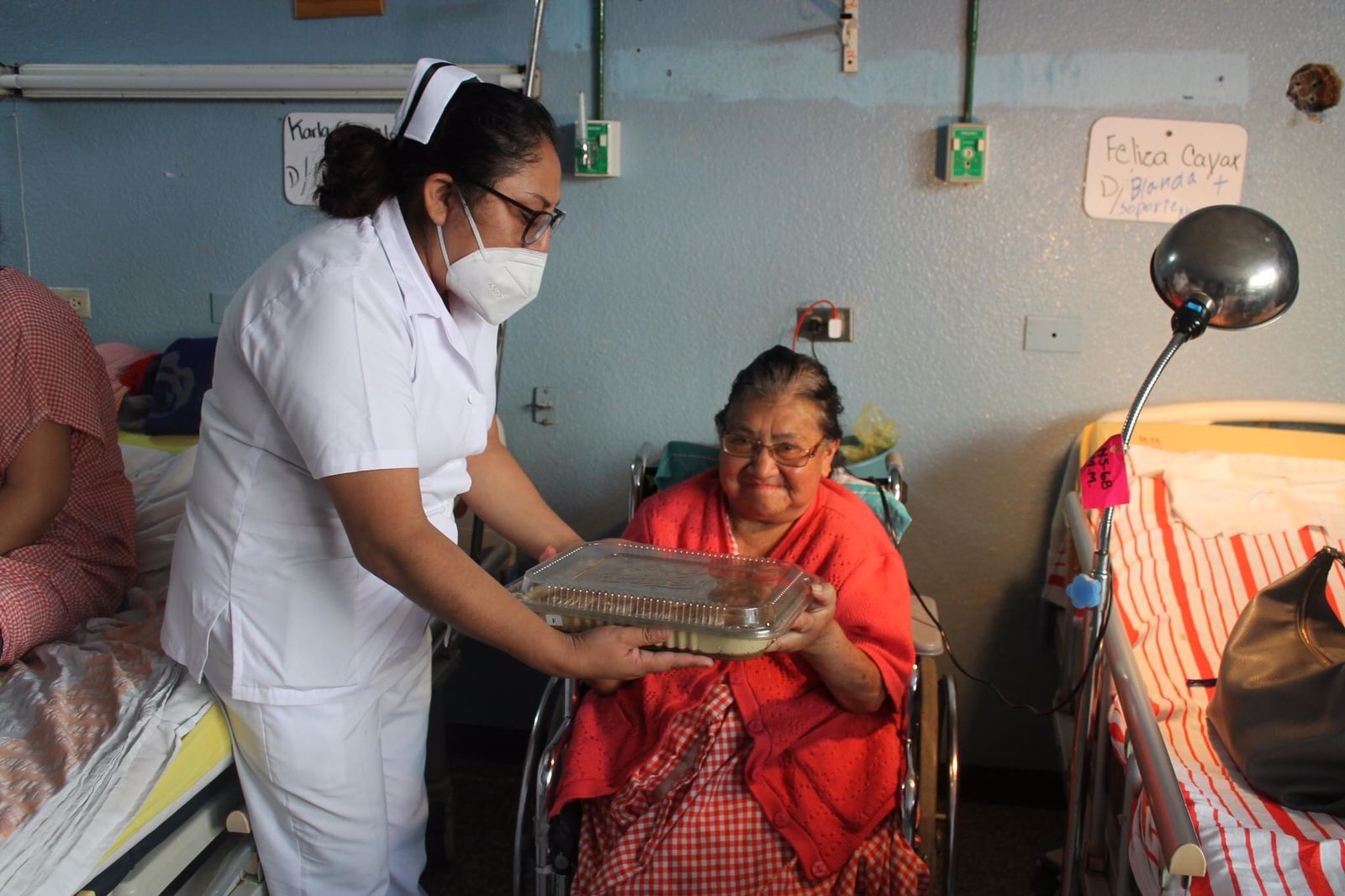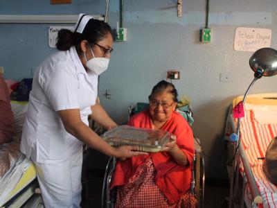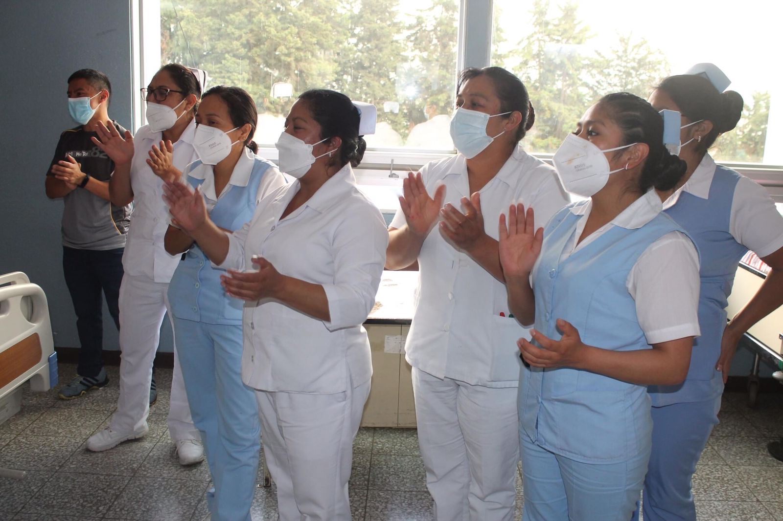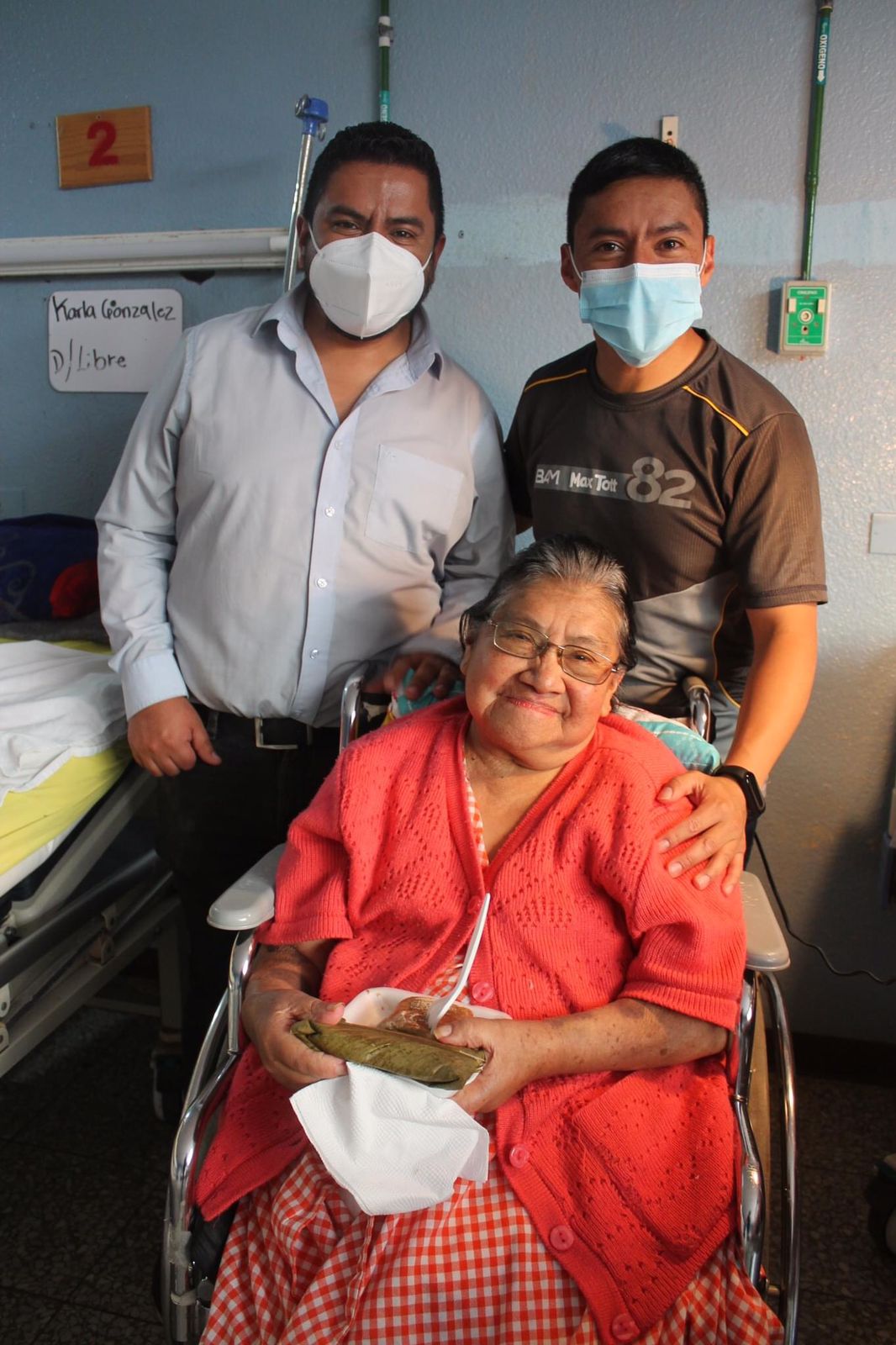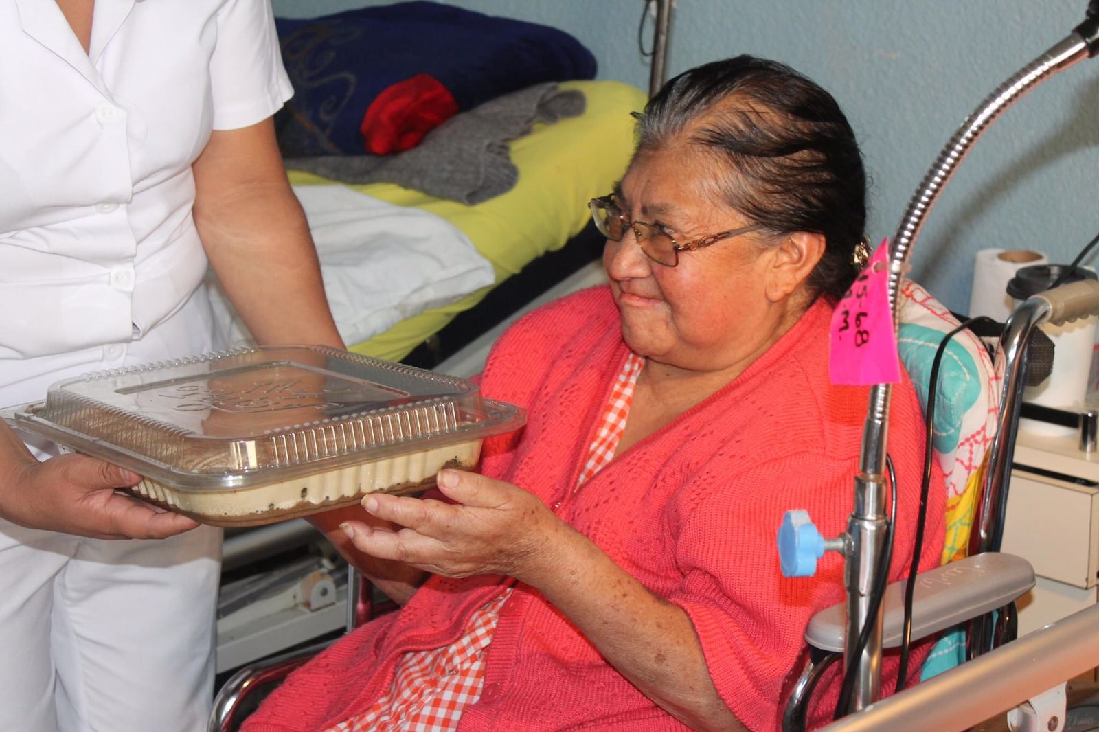 Antes de salir del centro asistencial, doña Felisa estuvo rodeada de abrazos y felicitaciones, y a la vez degustó pastel y una refacción que personal del hospital preparó como parte de la celebración para ella.