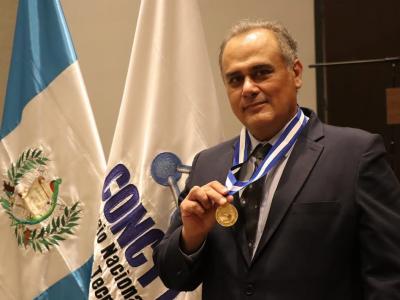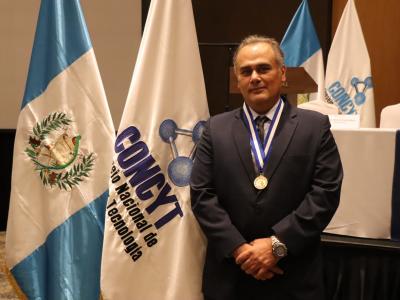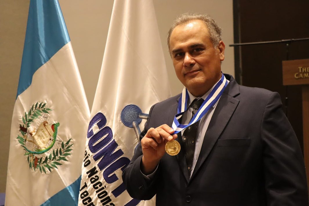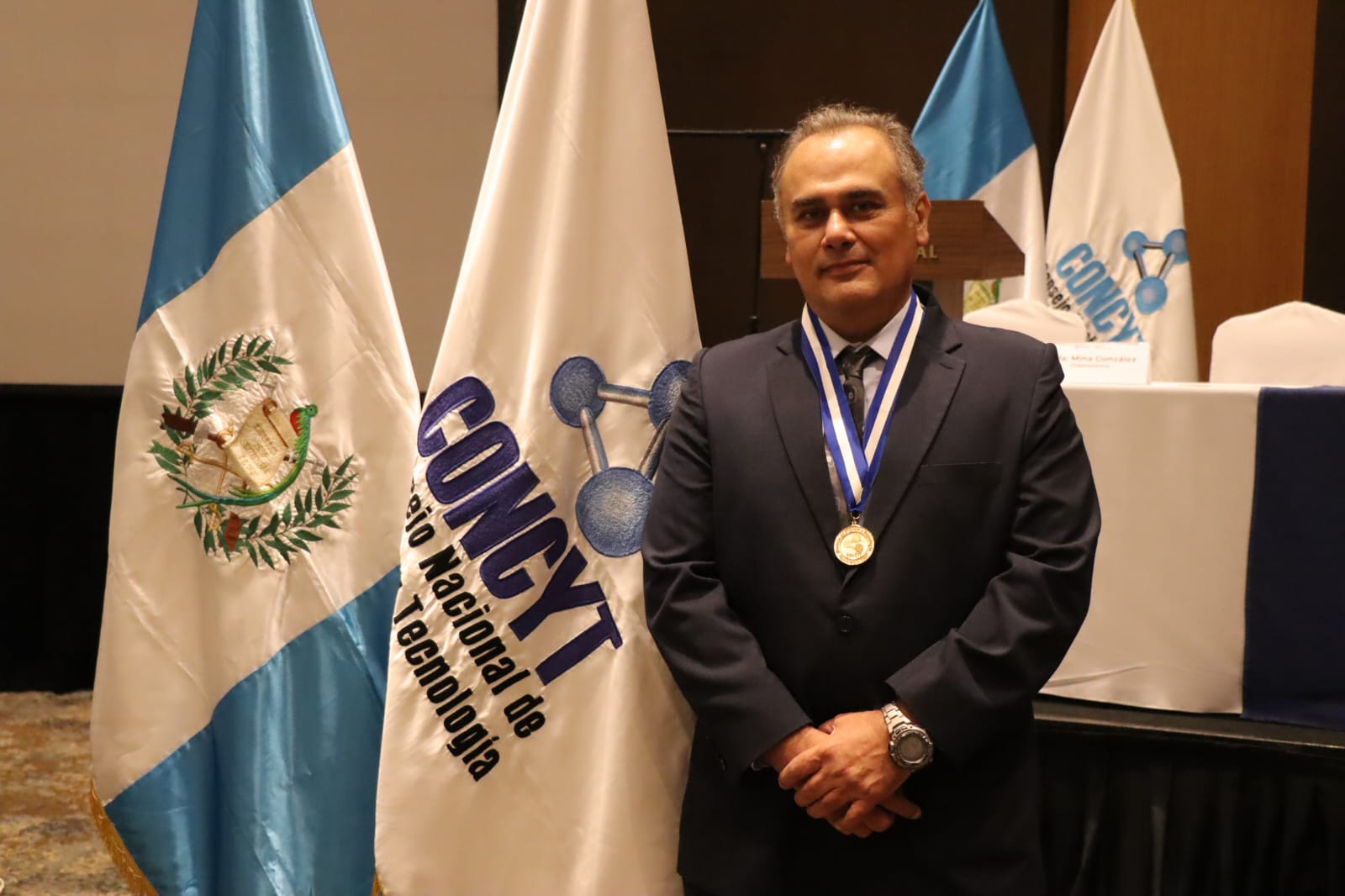 Guatemala, 16 de marzo de 2022.- El máximo reconocimiento al trabajo científico en Guatemala, la Medalla de ciencia y tecnología, lo recibió el doctor en química Juan Francisco Pérez Sabino, por su trayectoria laborar y aportes para el desarrollo de Guatemala.