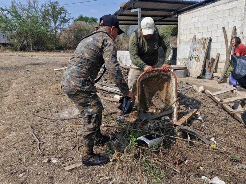 El Ejército de Guatemala a través de la Tercera Brigada de Infantería, realiza jornadas de deschatarrización en el departamento de Jutiapa; esta iniciativa busca limpiar y ordenar los espacios públicos, retirando chatarra y objetos en desuso que pueden acumular agua y convertirse en criaderos de zancudos y otros vectores de enfermedades durante la temporada de lluvias que se aproxima, representando riesgos para la salud de las comunidades.