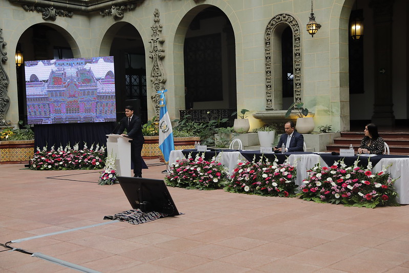El fastuoso recinto, enclavado en el Centro Cultural Real Palacio de los Capitanes, en la ciudad colonial de La Antigua Guatemala, que guarda parte del patrimonio de una nación heredera de más de tres mil años de riqueza cultural, fue escenario de la presentación de la estrategia de país.
