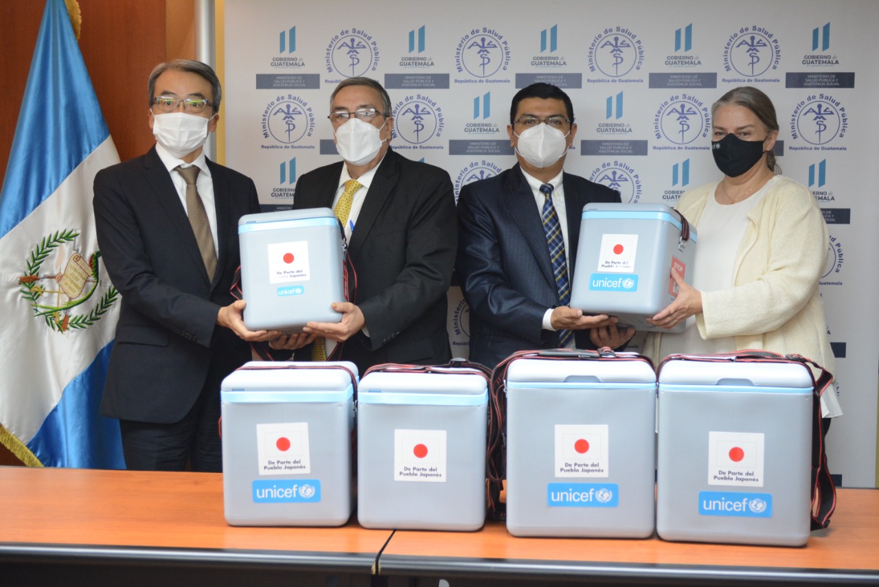 El Gobierno del Japón y el Fondo de las Naciones Unidas para la Infancia (UNICEF) entregaron al Ministerio de Salud Pública y Asistencia Social (MSPAS) el primer lote de equipamiento de cadena de frío con el fin de fortalecer la capacidad de almacenamiento y distribución de vacunas contra el COVID-19.