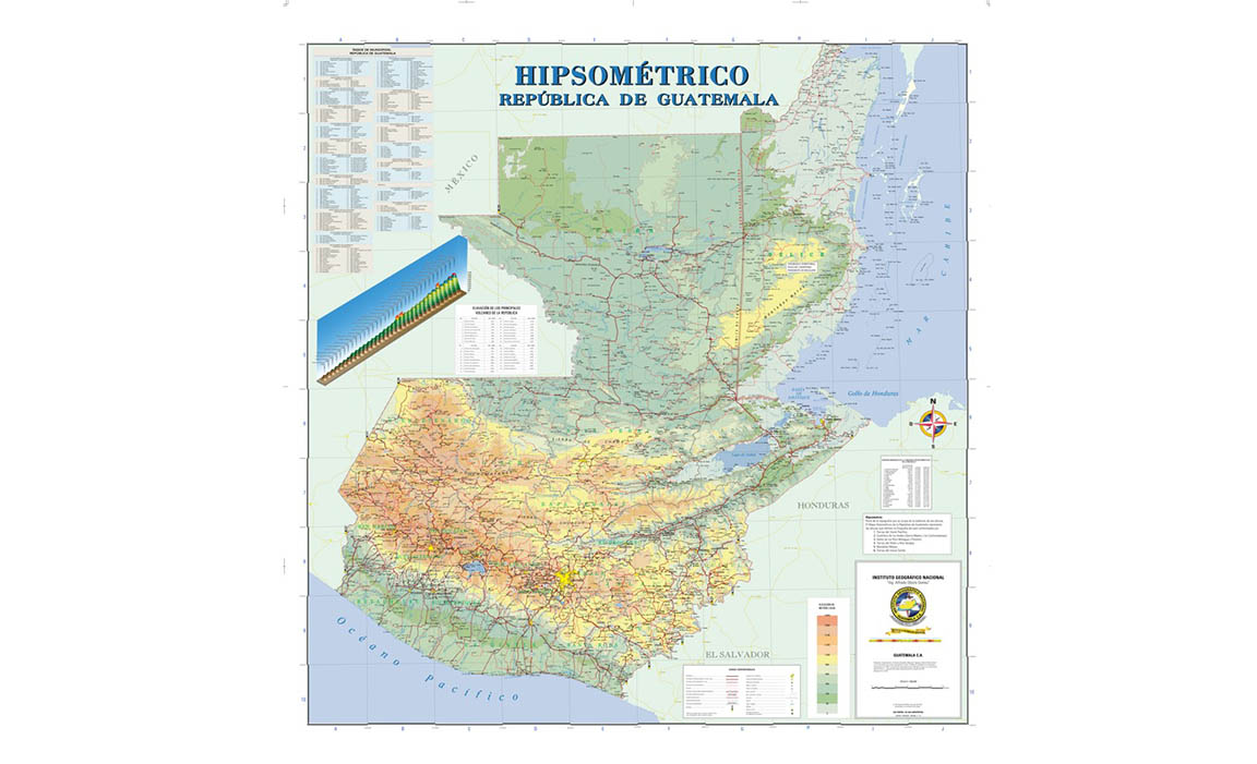 El Ministerio de Agricultura, Ganadería y Alimentación (MAGA). por medio del Instituto Geográfico Nacional (IGN) “Ingeniero Alfredo Obiols Gomez”, elabora y publica estas representaciones cartográficas, las que permiten visualizar de manera clara la topografía del país, destacando desde las zonas bajas hasta las cumbres más elevadas de la geografía guatemalteca.