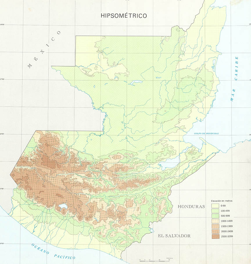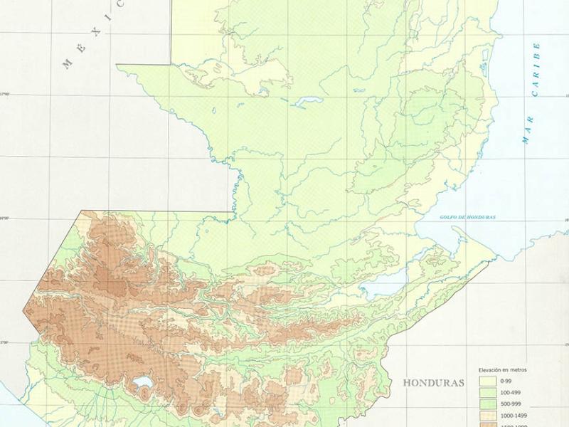El mapa hipsométrico es una representación del relieve de Guatemala
