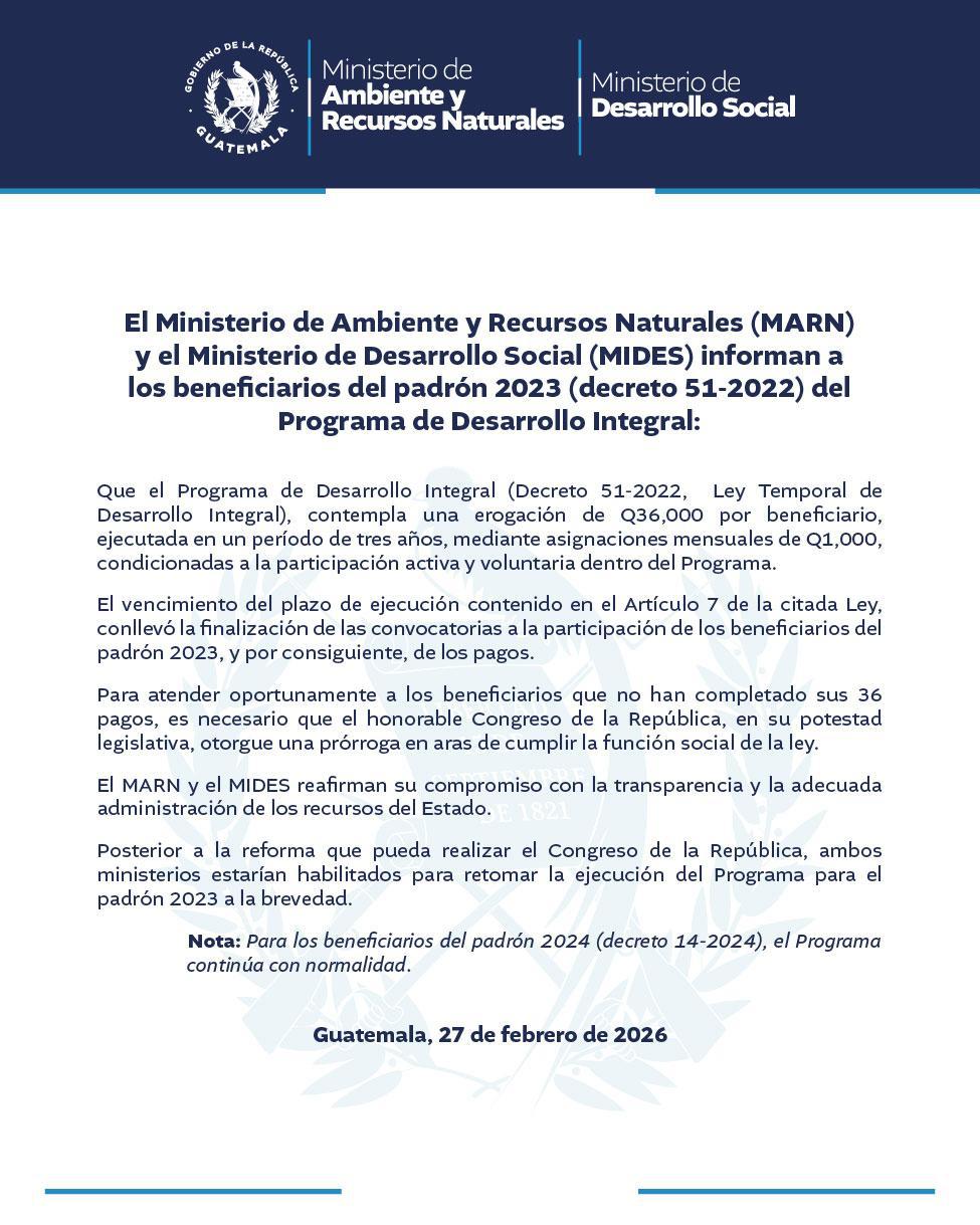 El MARN y el MIDES informan a los beneficiarios del padrón 2023 (decreto 51-2022) sobre el Programa d eDesarrollo Social Integral