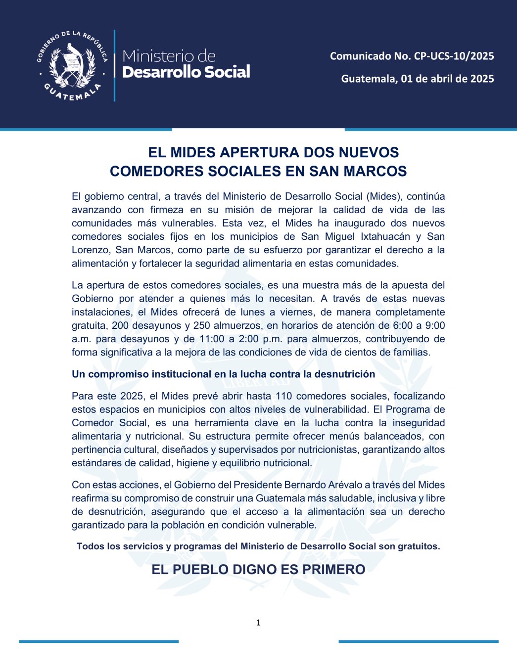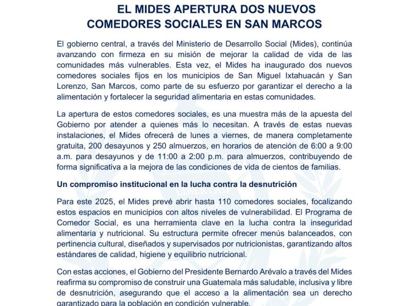 EL MIDES APERTURA NUEVOS COMEDORES SOCIALES EN SAN MARCOS