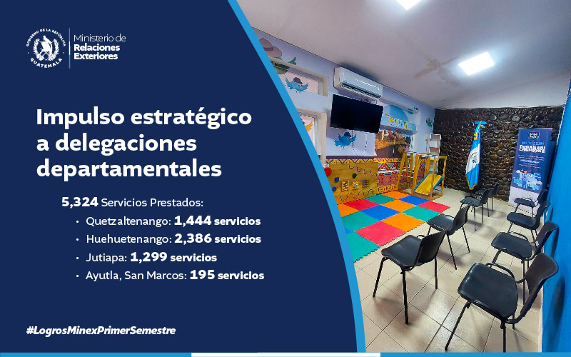 El Ministerio de Relaciones Exteriores cuenta con cuatro delegaciones regionales ubicadas en ciudades clave como Quetzaltenango, Huehuetenango, Jutiapa y Ayutla, San Marcos.