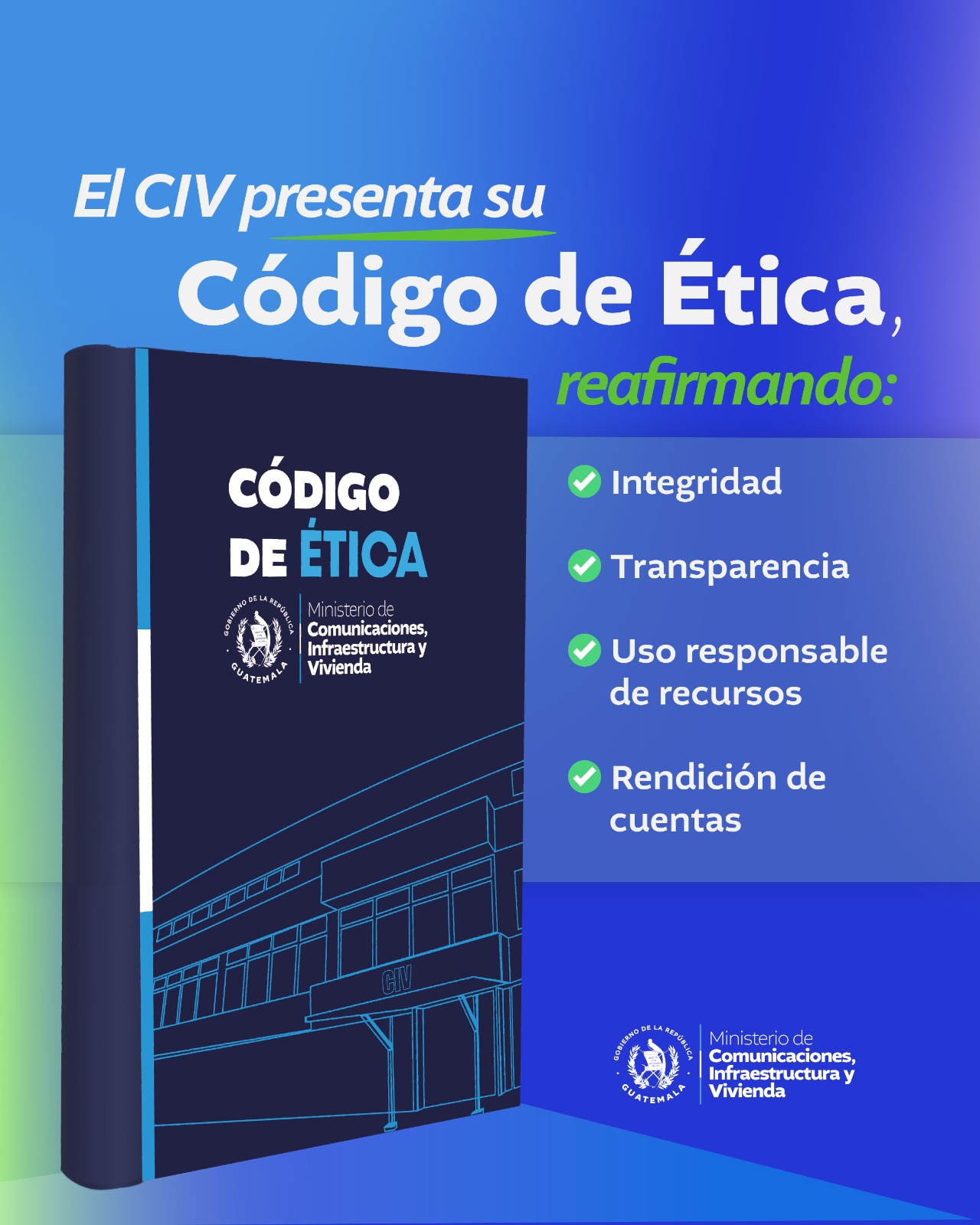 El nuevo Código de Ética del CIV tiene como propósito principal promover una cultura de transparencia, integridad y eficacia en el uso de los recursos públicos. Busca mejorar el desempeño del personal en todas las áreas del Ministerio, garantizando que su trabajo se guíe por valores como la honestidad, responsabilidad, justicia, equidad y respeto a los derechos humanos.