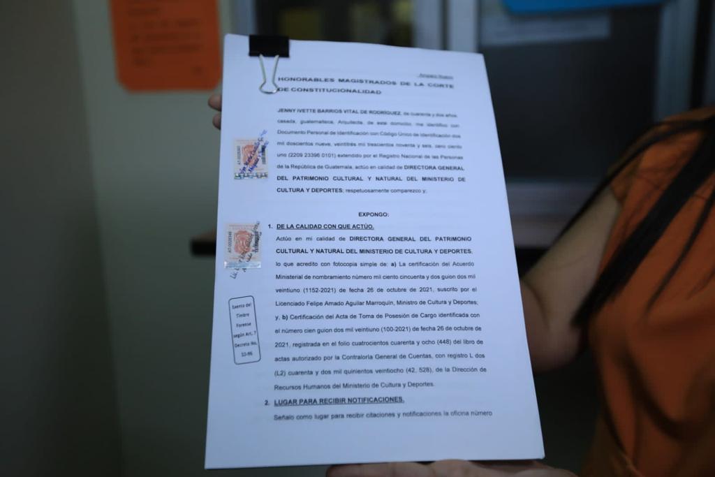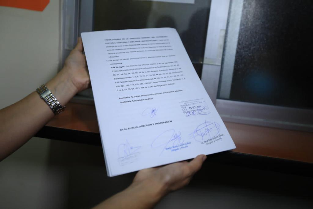 - Este 5 de octubre, fue presentada una acción de amparo en la Corte de Constitucionalidad, a fin de garantizar la atención a los visitantes y las operaciones regulares en las dependencias de la Dirección General del Patrimonio Cultural y Natural.
