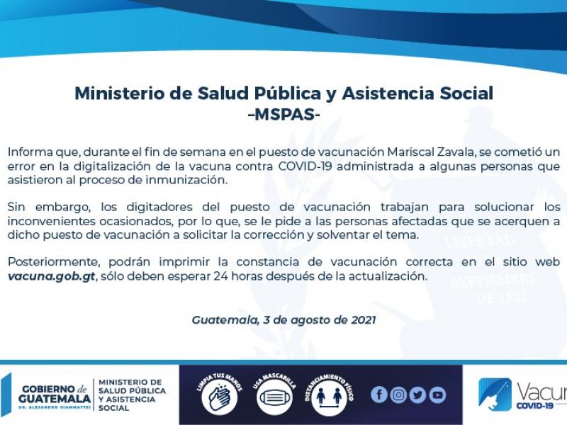 El Ministerio de Salud Pública y Asistencia Social informa: