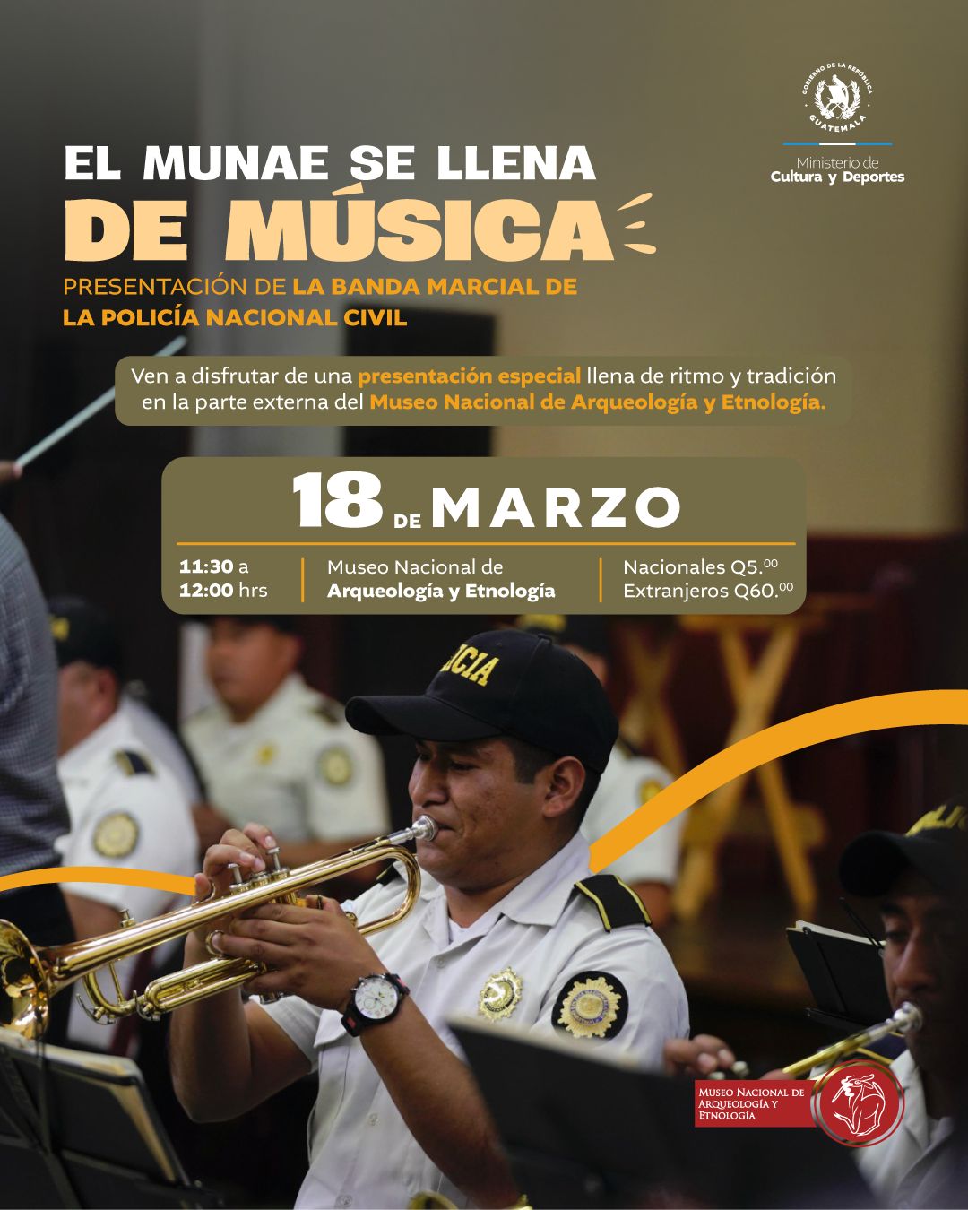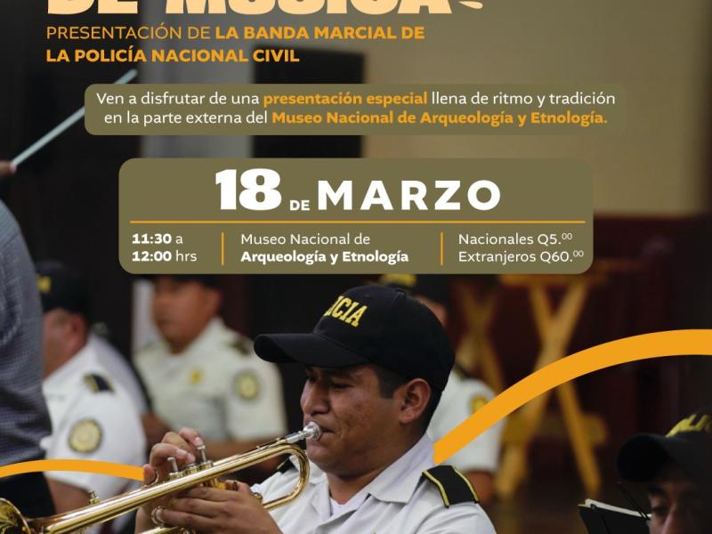 Te invitamos a disfrutar de la presentación de la Banda Marcial de la Policía Nacional Civil, una experiencia llena de energía, tradición y talento.