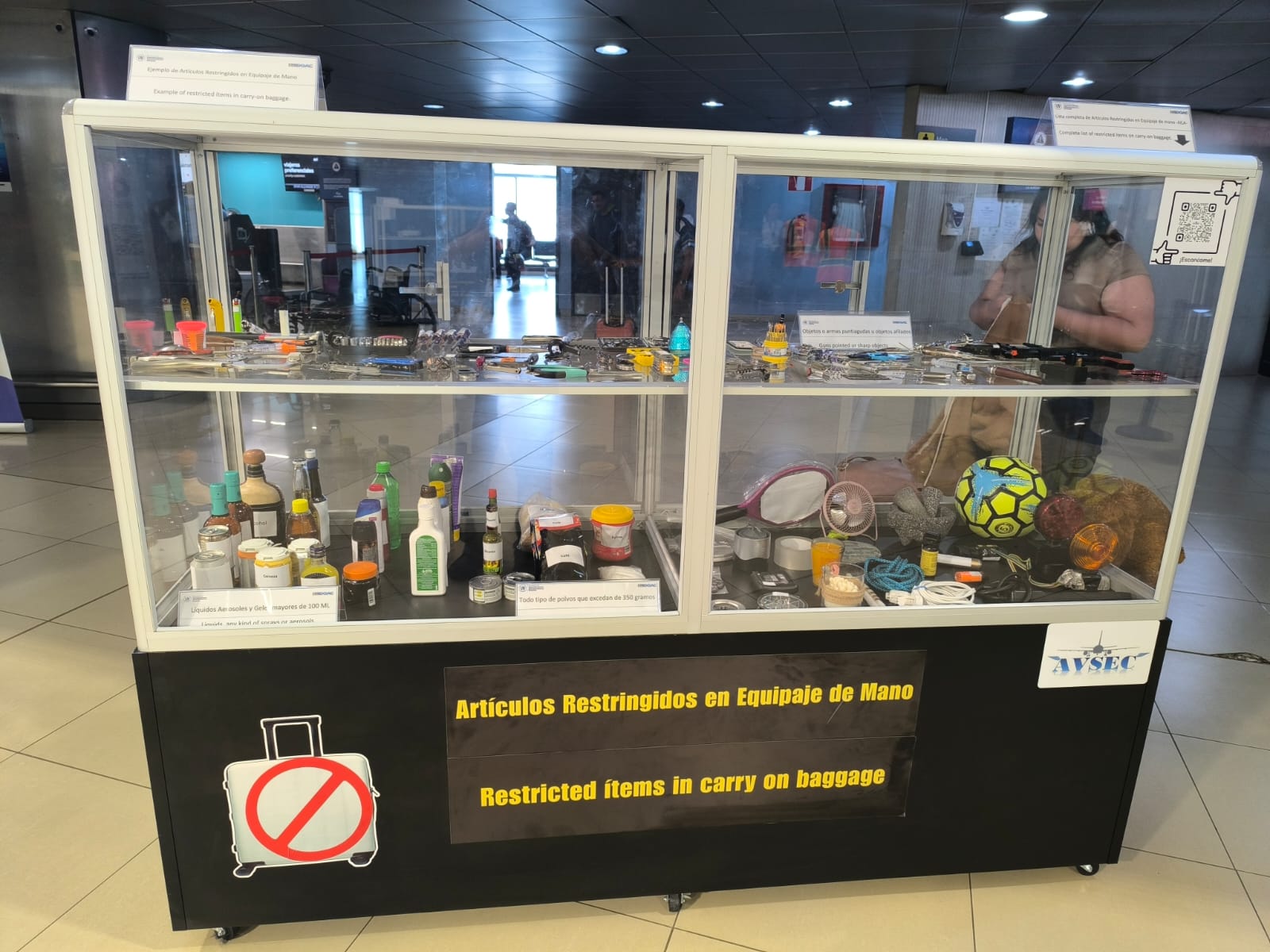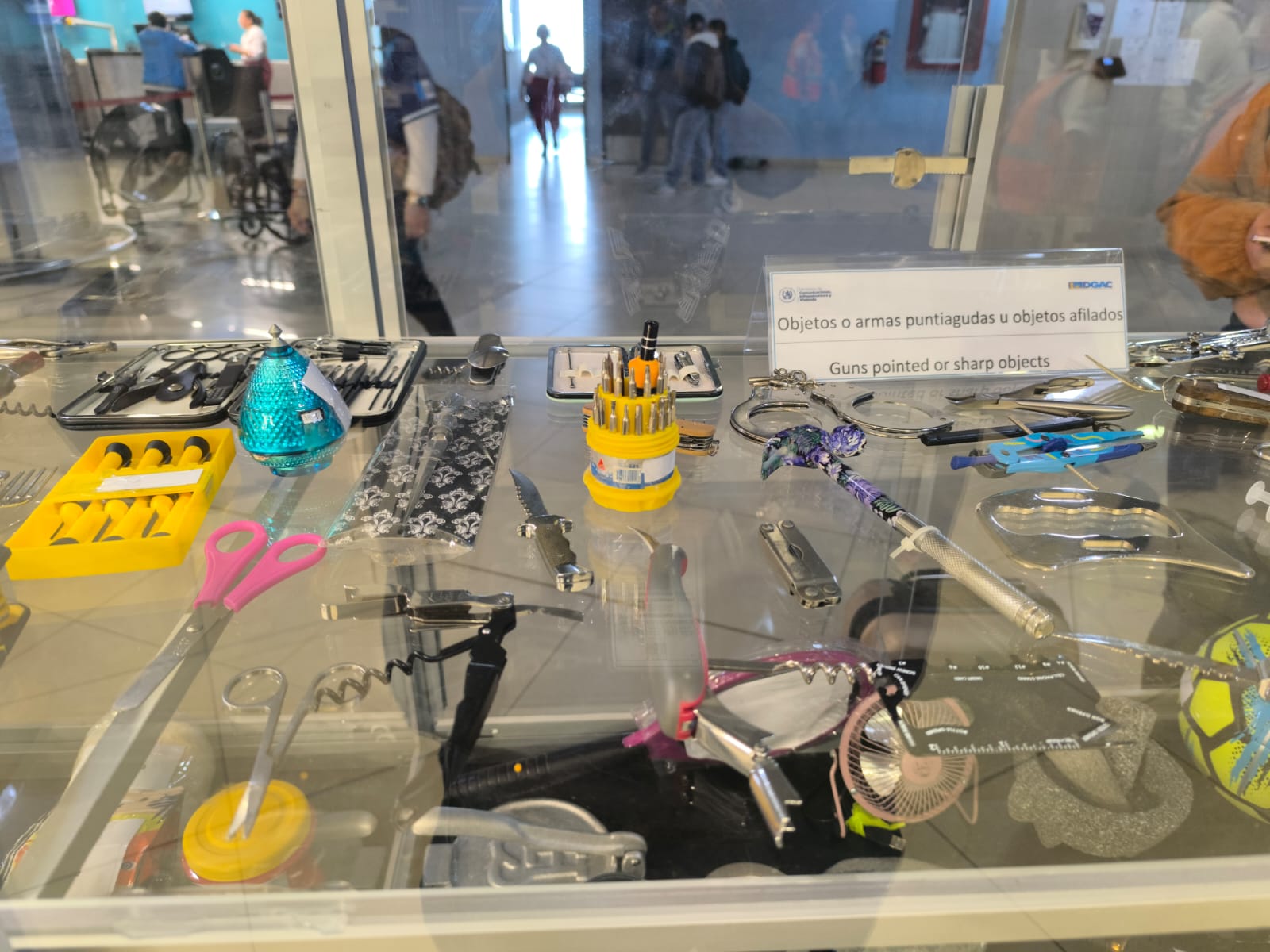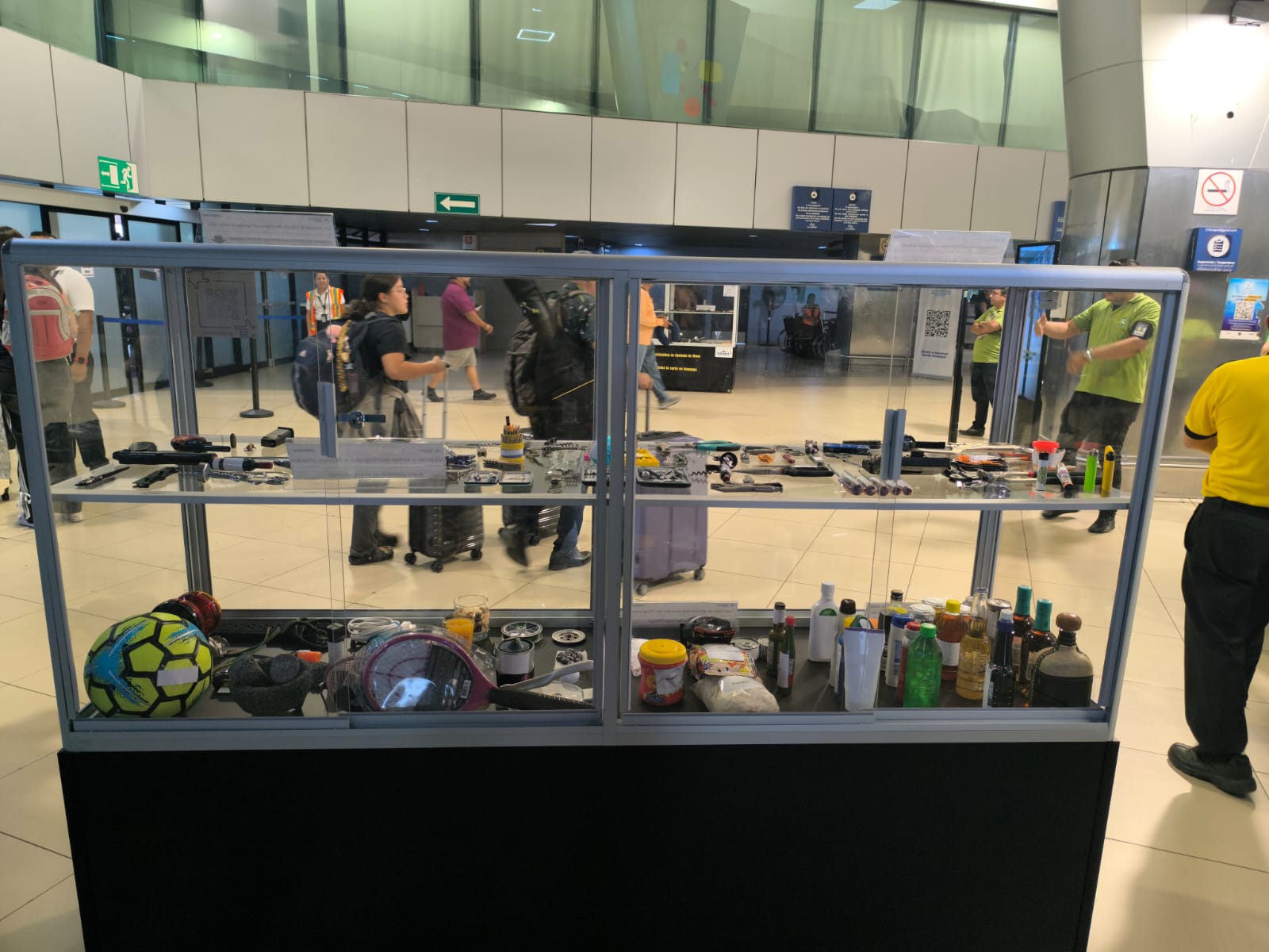 La exhibición, instalada por la Dirección General de Aeronáutica Civil (DGAC), no es solo un recordatorio curioso, sino una advertencia clara: hay cosas que no deben acompañarte en tu equipaje de mano, por tu seguridad y la de todos los pasajeros.