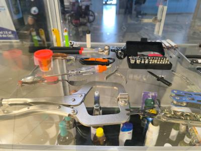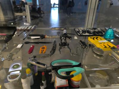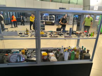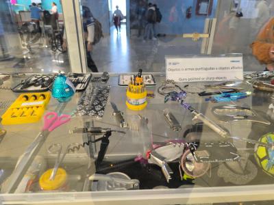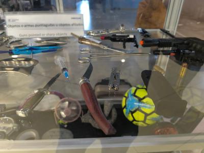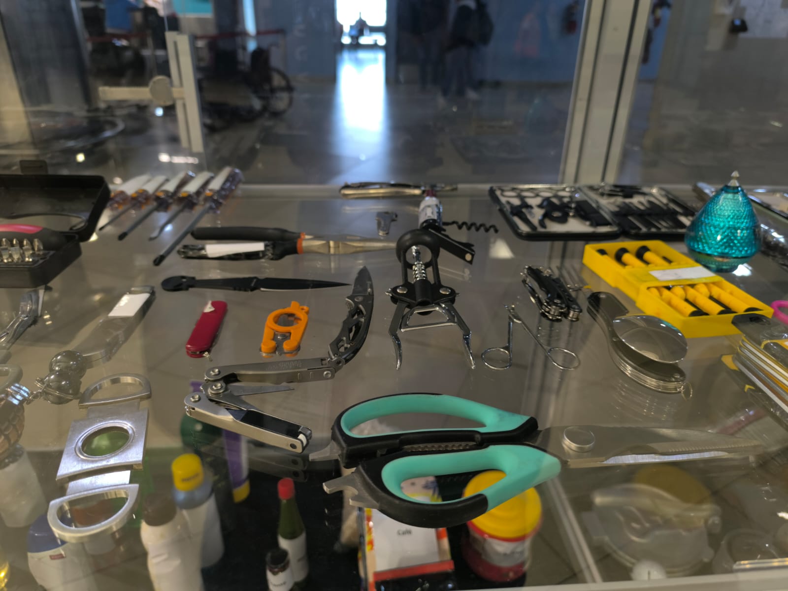 Tijeras que no cortaron camino al cielo, navajas que perdieron el vuelo, botellas que no pasaron la prueba de los 100 ml, encendedores con forma de pistola y sprays que jamás alcanzarán la altura de las nubes… todos comparten el mismo destino: ser parte de esta inusual colección de objetos prohibidos.