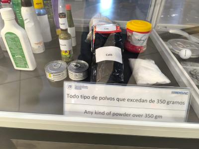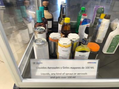 * Líquidos, geles y aerosoles: solo se permiten hasta 100 ml por envase, en bolsa de máximo 1 litro.