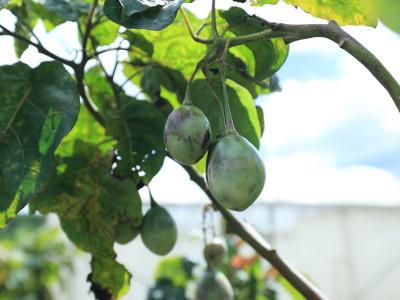 Un fruto que no es tan popular, pero que también se utiliza en la gastronomía nacional, es el tomate de árbol, también conocido como tomatillo. Este fruto, cuyo nombre científico es Solanum betaceum, es cultivado en Guatemala en las regiones de clima templado y en altitudes entre 1,500 y 2,800 metros sobre el nivel del mar.