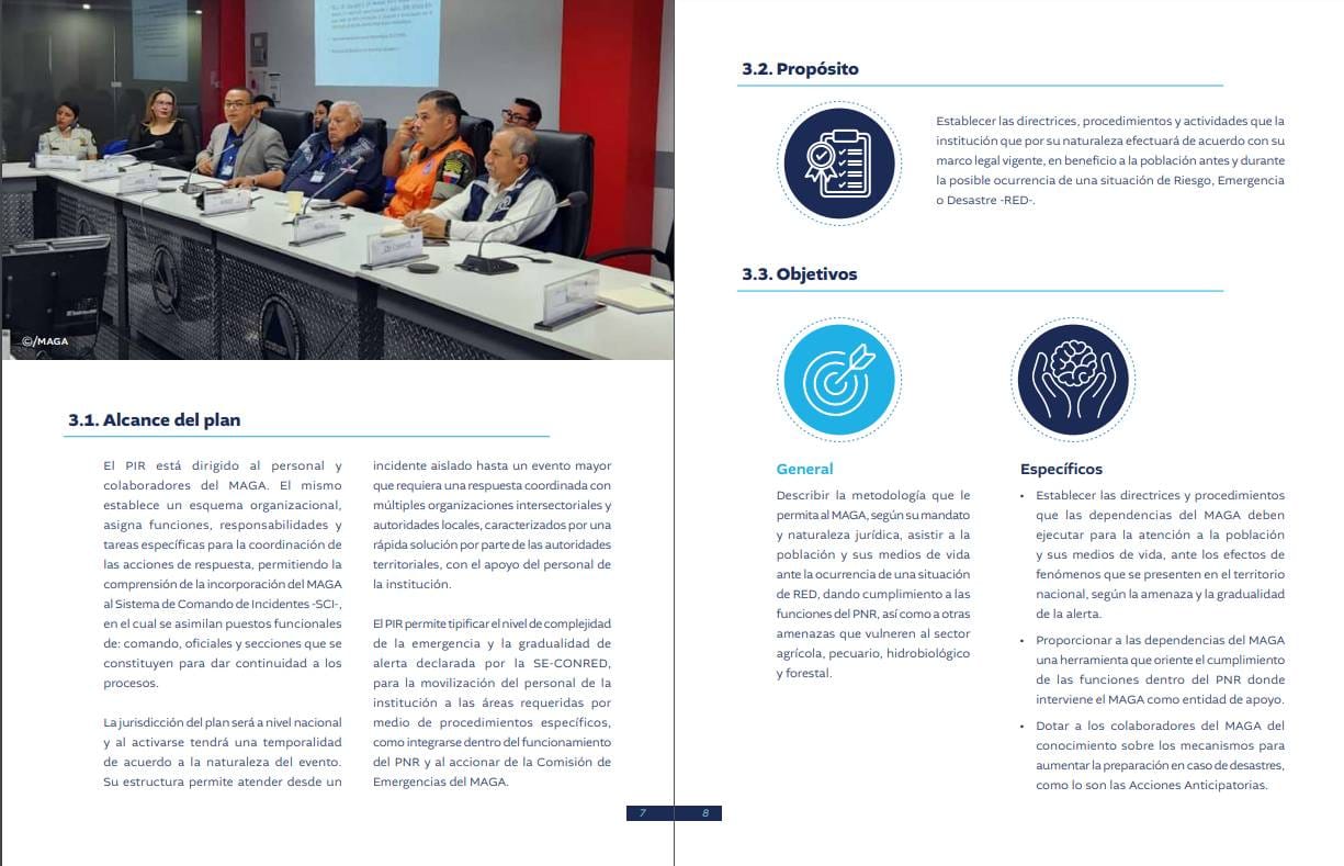El Ministerio de Agricultura, Ganadería y Alimentación (MAGA) actualizó su Plan Institucional de Respuesta (PIR), herramienta para que permite mejorar la gestión de riesgo y de respuesta a las poblaciones afectadas por fenómenos hidrometeorológicos, mediante la coordinación interna e interinstitucional.