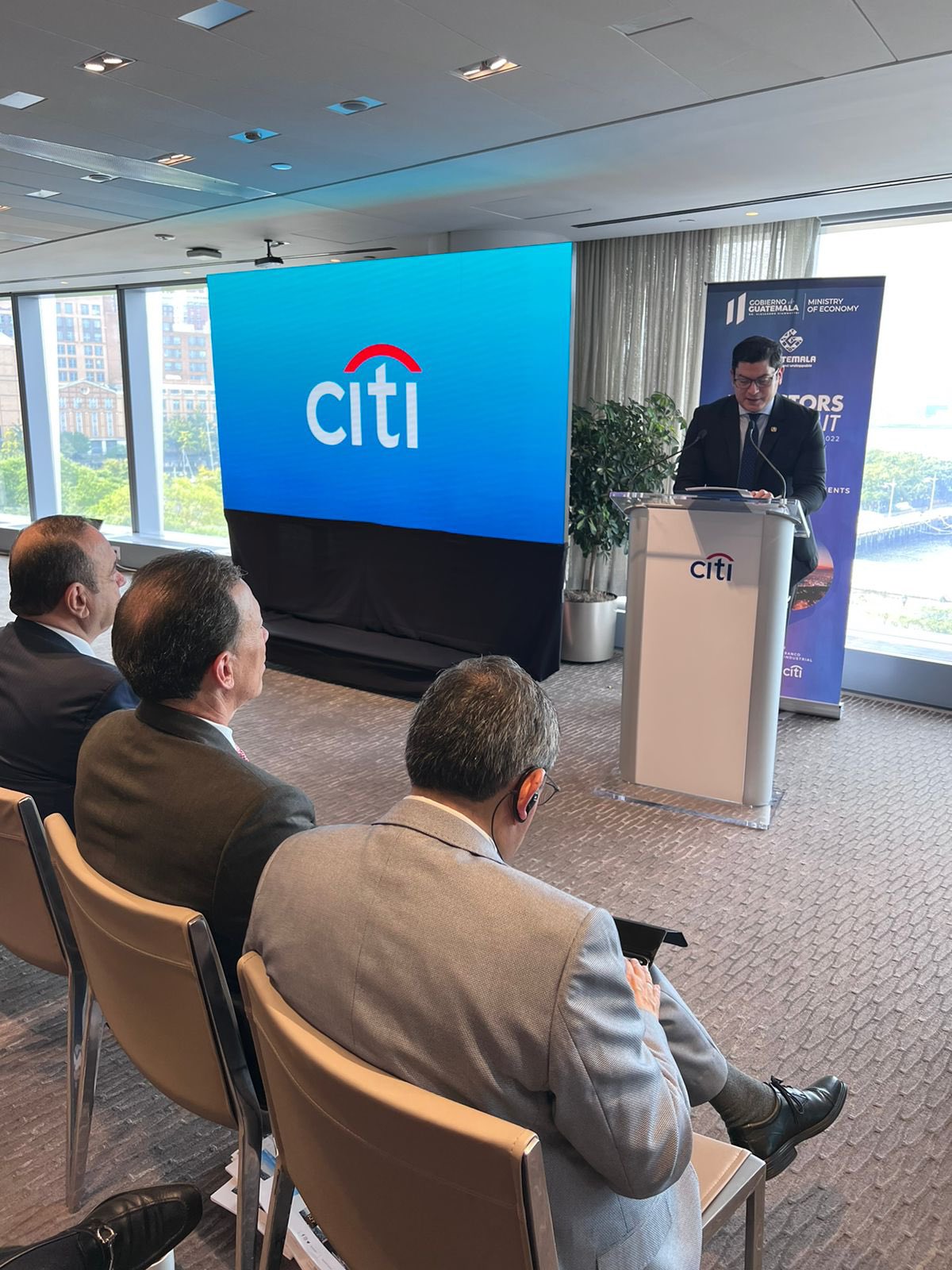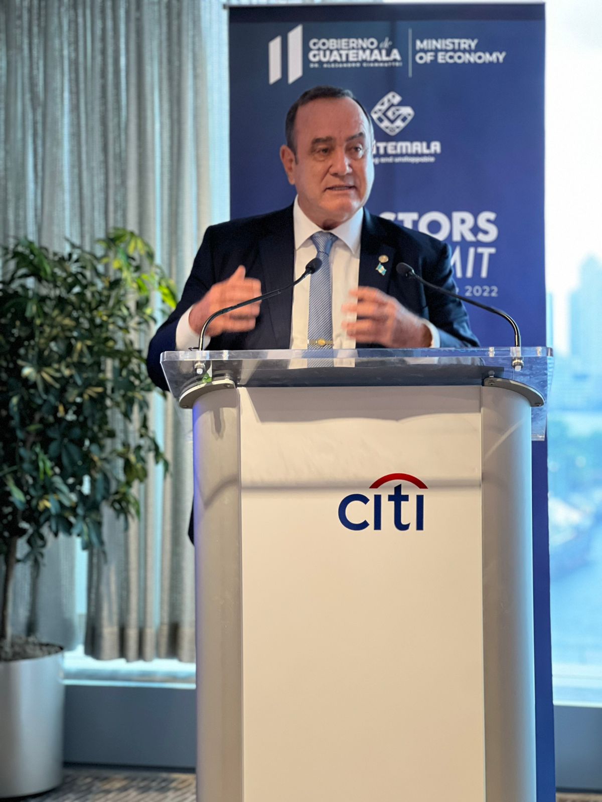 El presidente de Guatemala, Dr. Alejandro Giammattei, inauguró este jueves el Investors Summit en Nueva York, que contó con la participación de alrededor de 100 personas, entre representantes del sector financiero y privado, inversionistas de Guatemala y de Estados Unidos, así como integrantes del cuerpo diplomático.