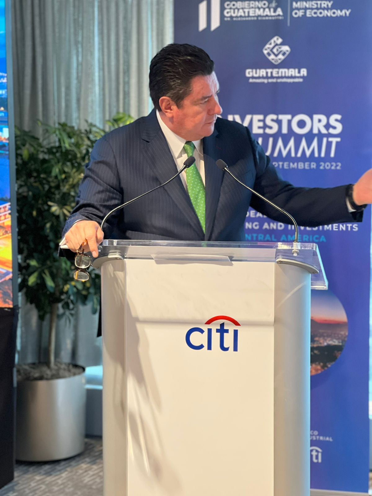 El presidente Giammattei presentó a los inversionistas al país, como El lugar ideal para nearshoring e inversiones en Centroamérica, refiriéndose a Guatemala como el país más resiliente de América, poseedor de la mayor y más estable economía de Centroamérica, con un Producto Interno Bruto que en 2021 sumó US$85,985.88 millones con un crecimiento para ese año de 8%.