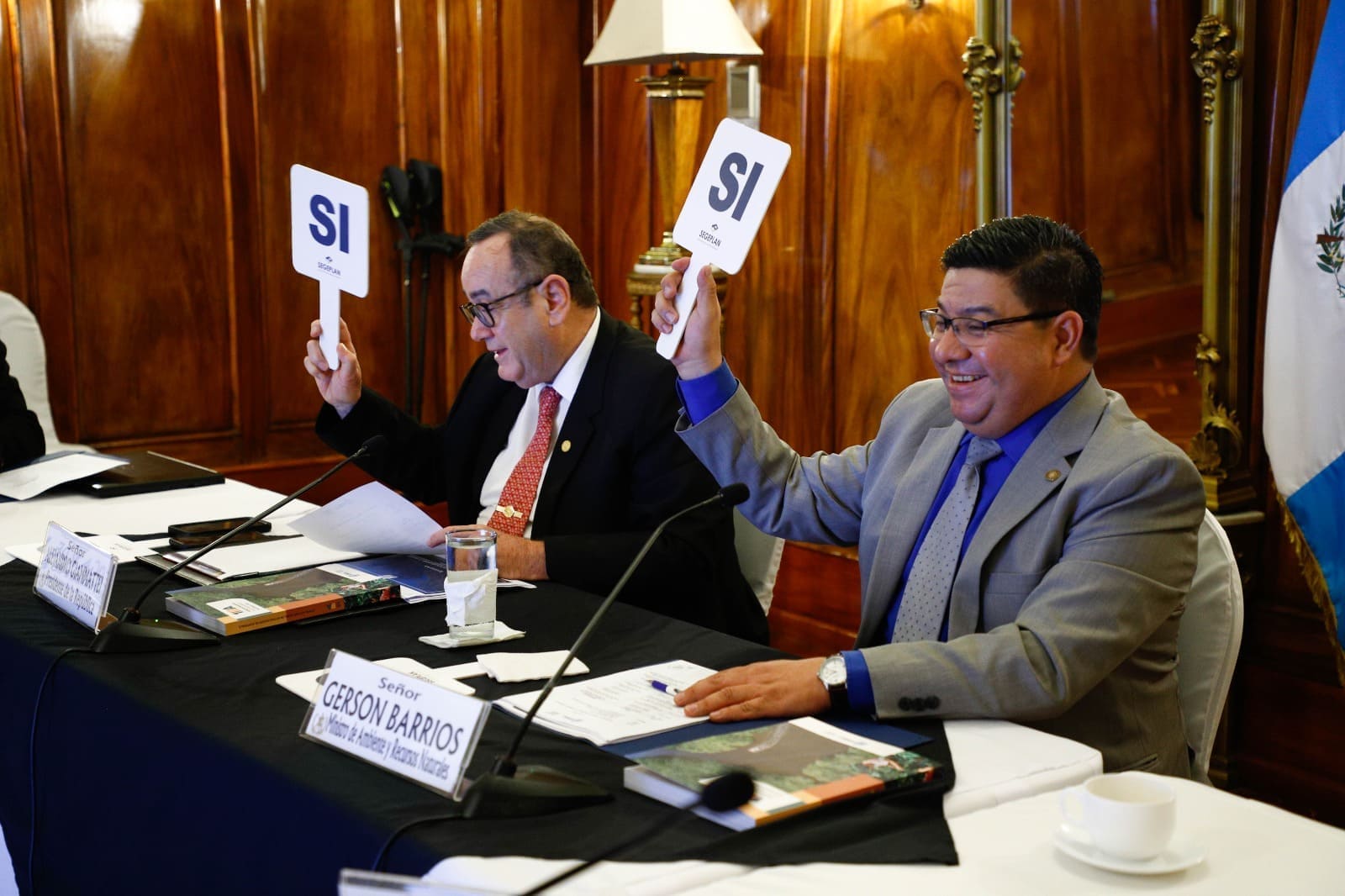 El presidente Alejandro Giammattei presidió la reunión ordinaria del Consejo Nacional de Cambio Climático (CNCC) junto al Ministro de Ambiente, Gerson Barrios.