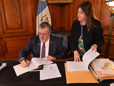 El presidente de la República, Bernardo Arévalo, sanciona la Política del Deporte 2025-2040