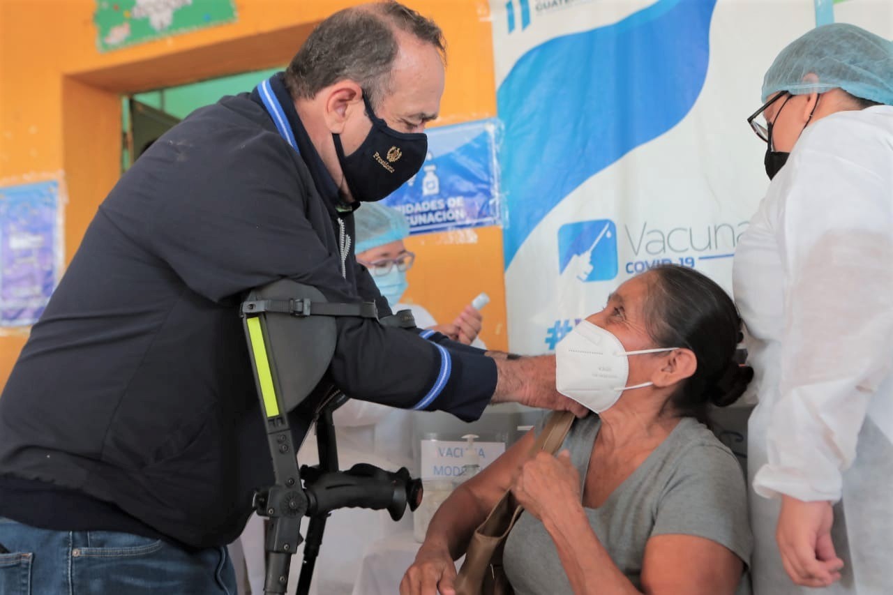 Actualmente, ambos municipios cuentan con un índice de vacunación en primeras dosis, arriba del 33% y han superado el 21% de su población con esquemas completos. “Cuidémonos. Cuando somos adultos mayores tenemos más riesgos de enfermarnos gravemente. Hoy tuve la oportunidad de colocar la dosis de refuerzo al Alcalde de Ayutla y también una primera dosis a un niño de 6 años.”, indicó el Dr. Giammattei