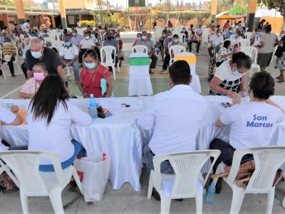 En San Marcos, a la fecha alrededor de 423 mil pobladores han recibido la primera dosis de esta vacuna; un aproximado de 310 mil ya tienen esquema completo y más de 105 mil personas se han colocado la dosis de refuerzo, a través de las diversas modalidades de vacunación, implementadas en todo el departamento.