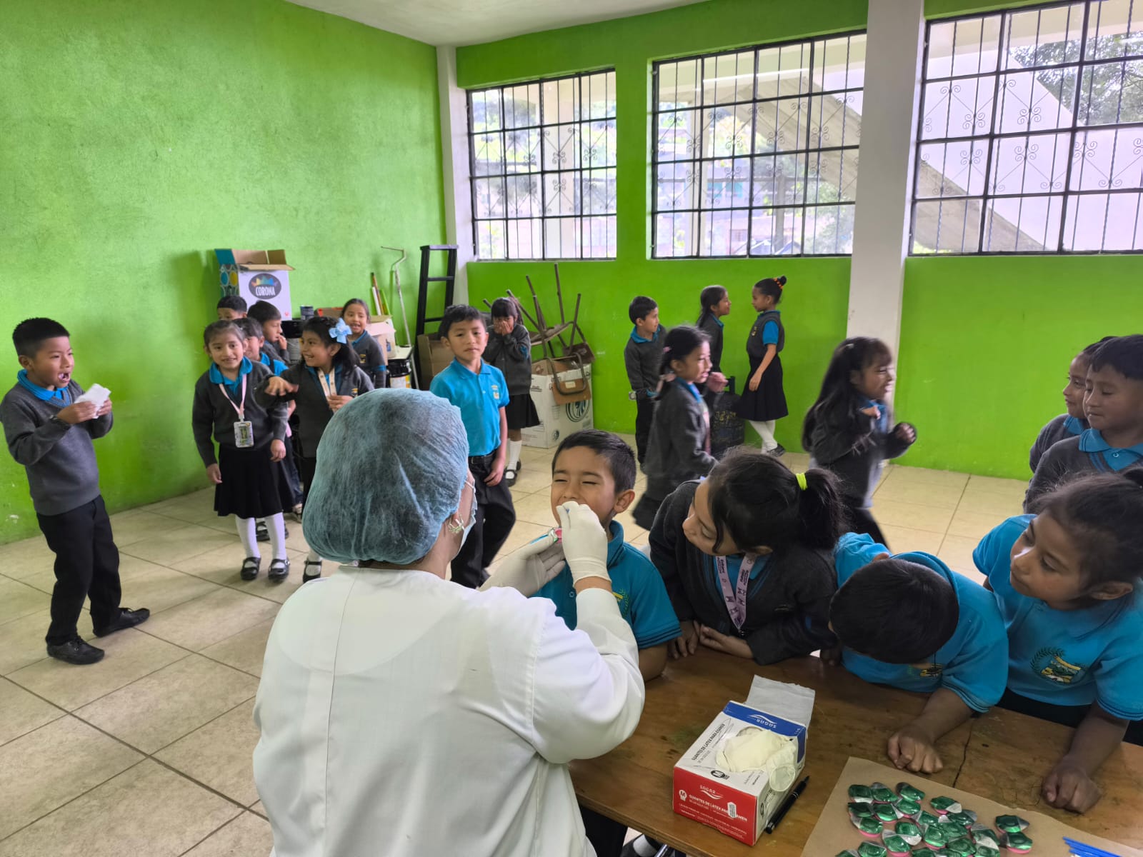 Como parte del Programa de Salud Escolar, estudiantes de la Escuela Oficial Rural Mixta del Caserío El Aguacate, Aldea Vista Hermosa, en San Pedro Sacatepéquez, participaron en una jornada educativa donde, además, se realizó aplicación de flúor, a cargo de la odontóloga del Centro de Salud local.
