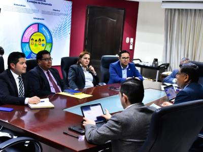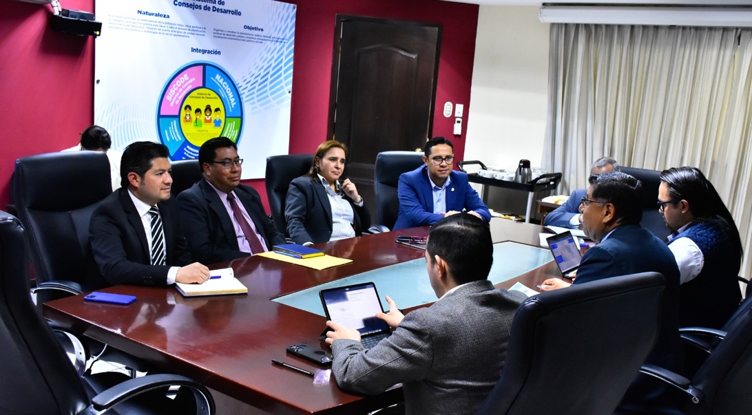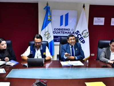 Guatemala, 24 de febrero de 2023. Autoridades de la Secretaría de Coordinación Ejecutiva de la Presidencia (SCEP) y del Registro General de la Propiedad, sostuvieron un acercamiento con la finalidad de concretar acciones en materia de descentralización, y viabilizar las gestiones y brindar certeza jurídica al registro de títulos de propiedad de los proyectos que se ejecutan con fondos del Sistema de Consejos de Desarrollo.