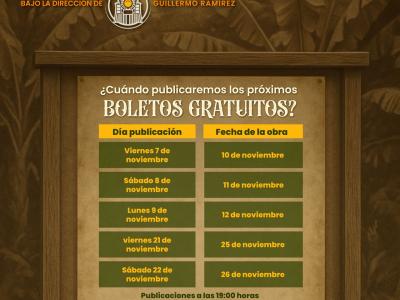 - Boletos disponibles: Habrá 300 boletos disponibles para cada función.