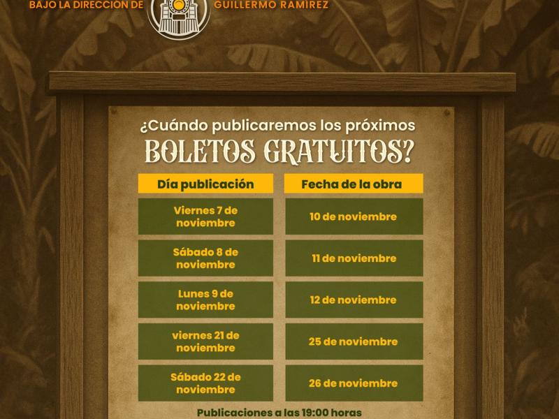 - Próximas funciones: Los días 10, 11, 12, 25 y 26 de noviembre.