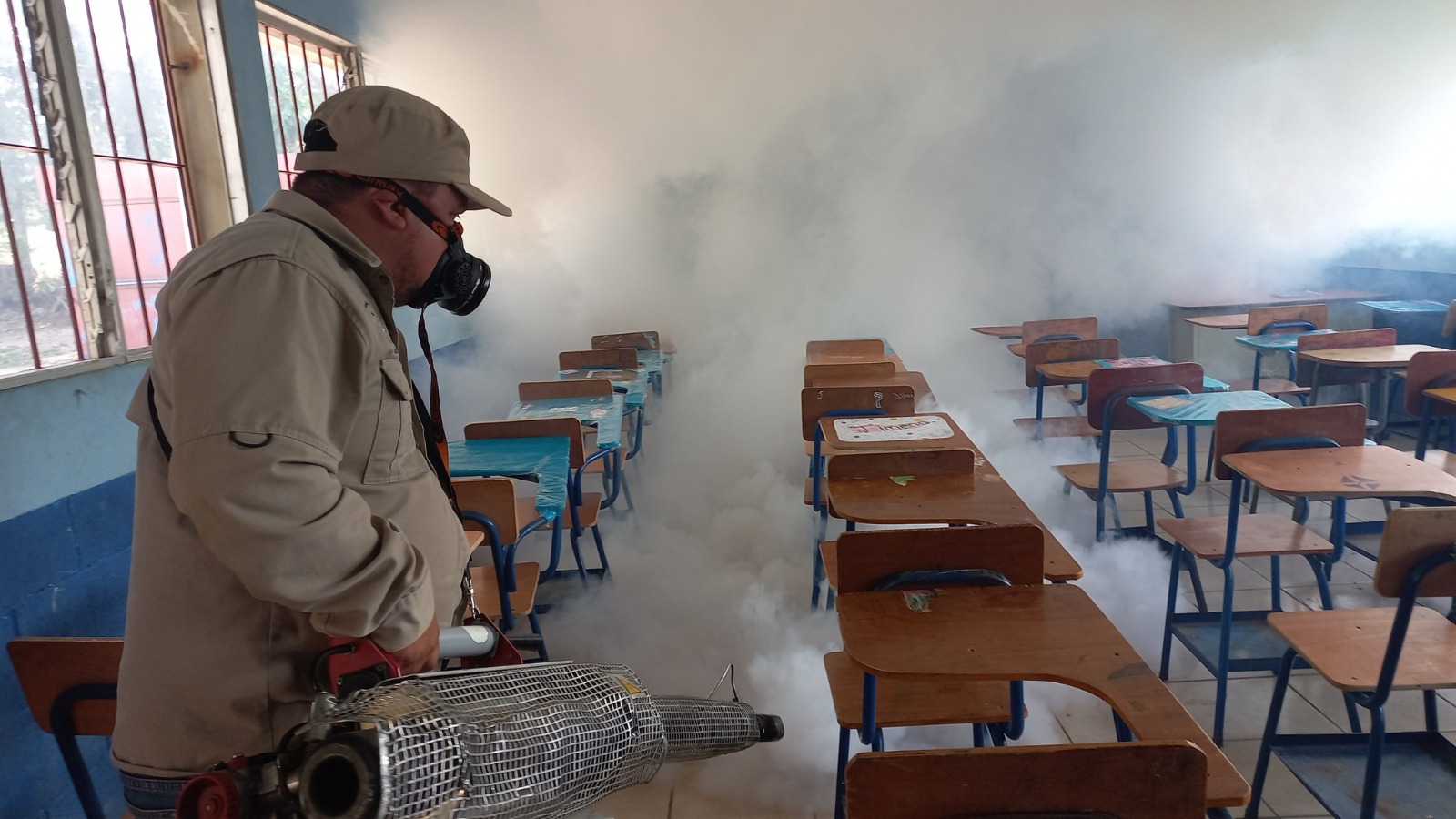 Ante ello, en cada centro educativo visitado se hacen recorridos para eliminar la chatarra u objetos en desuso para evitar criaderos de zancudos. Las pilas y recipientes de almacenaje de agua son inspeccionados y se coloca abate para eliminar las larvas de zancudo.