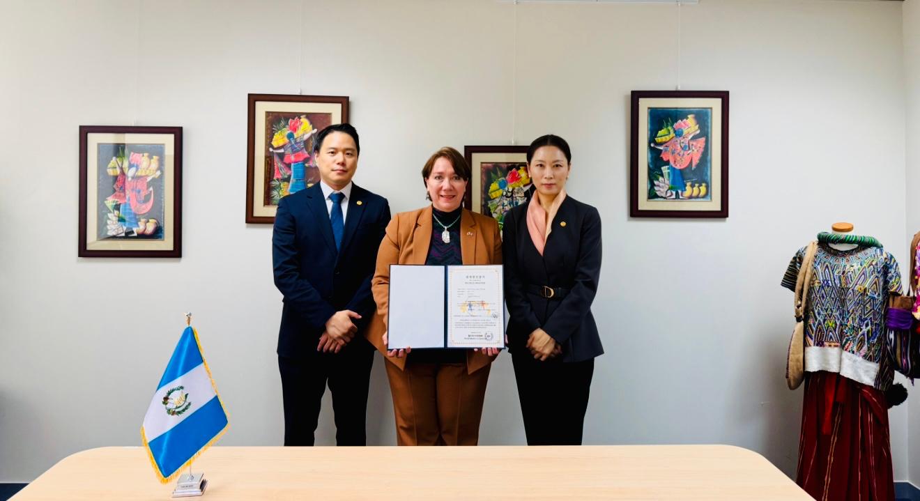 Este 15 de octubre, la Embajadora de Guatemala en Corea, Sara Solís Castañeda, recibió en la sede de la Misión Diplomática a los representantes del World Masters Committee, Sonya Kim y Jinny Khan, quienes entregaron oficialmente el reconocimiento destinado a la artista guatemalteca.