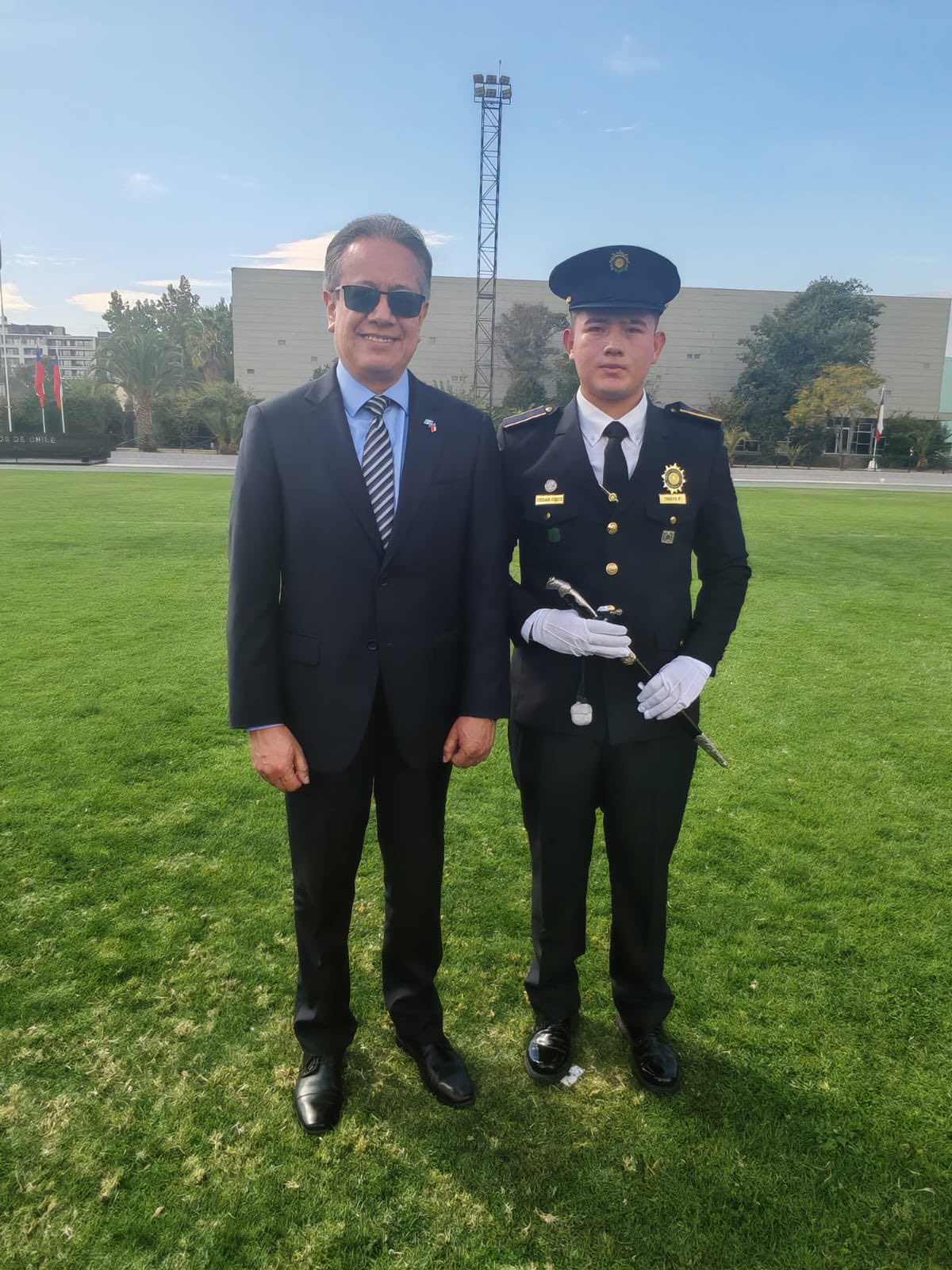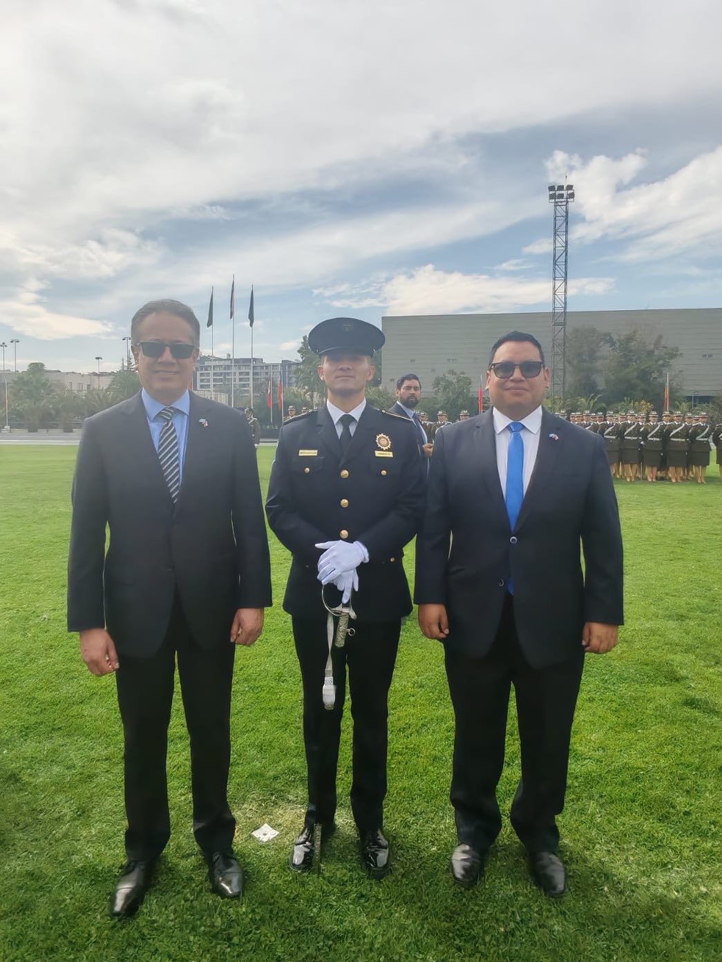 Santiago de Chile, 17 de abril de 2026. La Embajada de Guatemala en Chile acompañó a los agentes de la Policía Nacional Civil (PNC) de Guatemala que participan como becarios en cursos de formación del Programa de Cooperación Internacional del Gobierno de Chile para Policías Uniformadas Extranjeras (CECIPU), durante la Ceremonia de Entrega de Sables y Espadines a aspirantes de primero y segundo año de la Escuela de Carabineros.