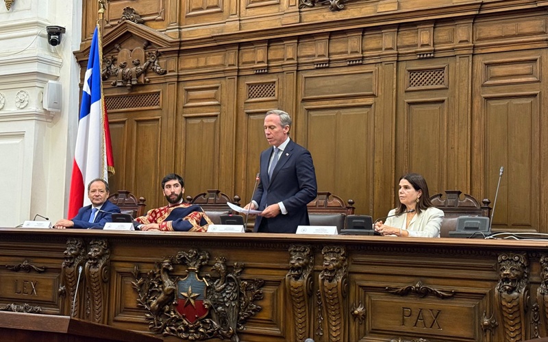 Santiago de Chile, 13 de abril de 2026. El embajador Wendel Arriaza participó en el encuentro del Cuerpo Diplomático con la mesa de la Cámara de Diputadas y Diputados de Chile, ocasión en la que tuvo oportunidad de dirigirse al presidente de ese organismo, Jorge Alessandri; al primer vicepresidente, Felipe Camaño; y a la segunda vicepresidenta, Ximena Osaandón.