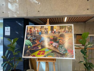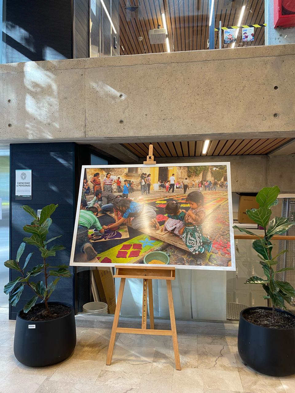 La muestra incluye imágenes de los fotógrafos Vera Cancinos (guatemalteca) y Janusz Leszczynski, que retratan la forma en que se celebra la Semana Santa en Guatemala, el sincretismo y el fervor religioso de la gente, así como el trabajo comunitario en la elaboración de las coloridas alfombras hechas de aserrín teñido, flores o frutas.