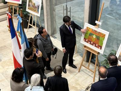 El acto fue presidido por el Embajador de Guatemala, Wendel Arriaza Ayala, quien en su alocución hizo mención de las características propias que han hecho de la celebración de la Semana Santa en nuestro país, un evento único en el mundo, enfatizando que fue declarada Patrimonio Cultural Inmaterial de la Humanidad en 2022 por la UNESCO y que, por tanto, “ya no es un patrimonio cultural exclusivo de los guatemaltecos, es un patrimonio también de todos ustedes…de la humanidad”. Luego, invitó a los presentes a conocer esta expresión de fe y cultura a través de la muestra, la cual fue “preparada con mucho cariño”.