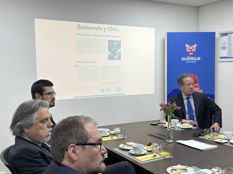 En ese marco, la sede de la Embajada de Guatemala en Chile fue el escenario de una reunión sobre diplomacia cultural en el ámbito literario. Este encuentro contó con la asistencia de las autoridades de la Fundación Pablo Neruda, los Jefes de las Misiones Diplomáticas de Colombia, México y Perú, países que comparten la distinción de un Premio Nobel de Literatura latinoamericano, además de funcionarios de Cancillería chilena.