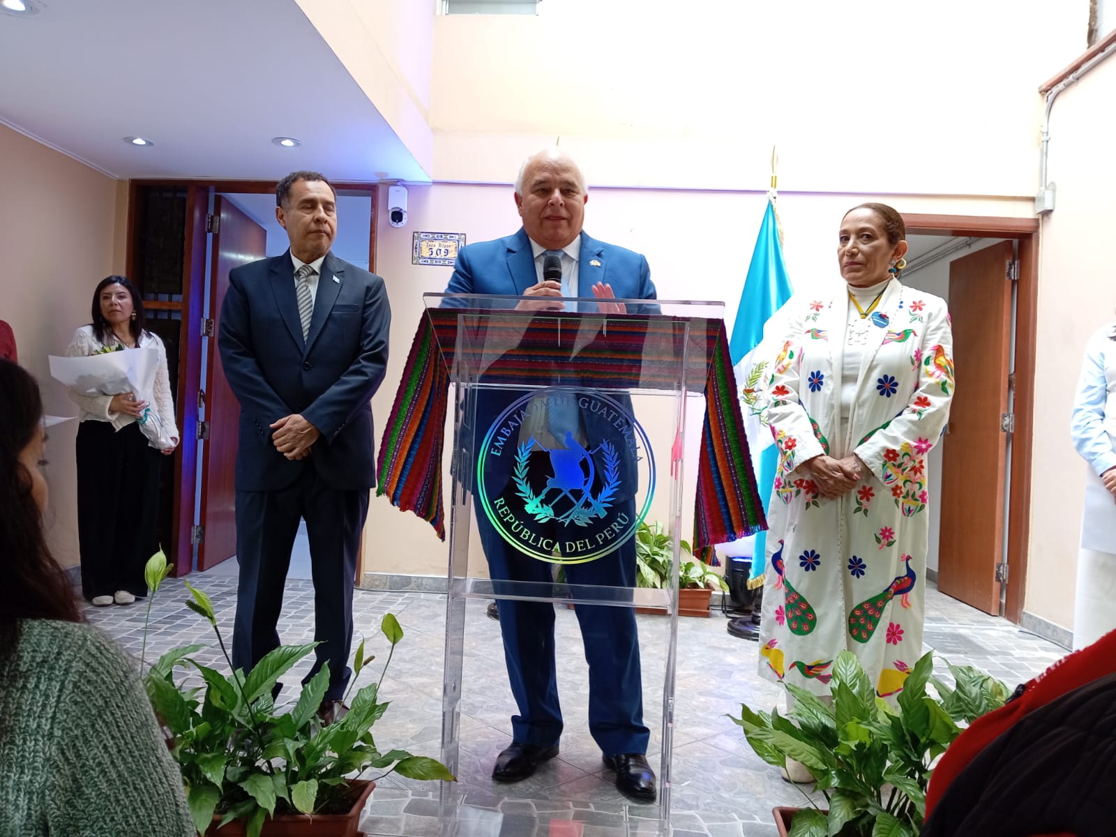 El Embajador Herbert Estuardo Meneses Coronado transmitió un saludo en nombre del Presidente de la República, Bernardo Arévalo de León, y del Ministro de Relaciones Exteriores, Embajador Carlos Ramiro Martínez Alvarado, a toda la comunidad guatemalteca residente en Perú.