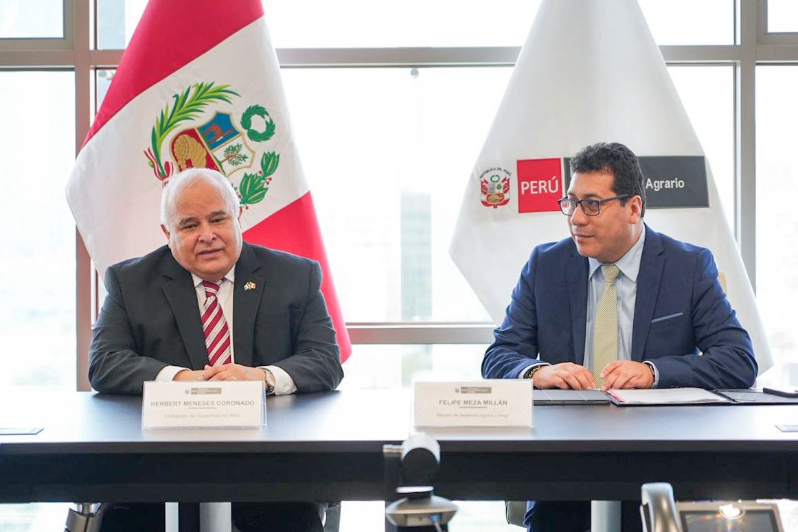 Lima, Perú, 30 de marzo de 2026. El embajador de Guatemala en Perú, Herbert Estuardo Meneses Coronado, realizó una visita oficial al ministro de Desarrollo Agrario y Riego, Felipe César Meza Millán, en el marco del fortalecimiento de las relaciones bilaterales entre ambos países.